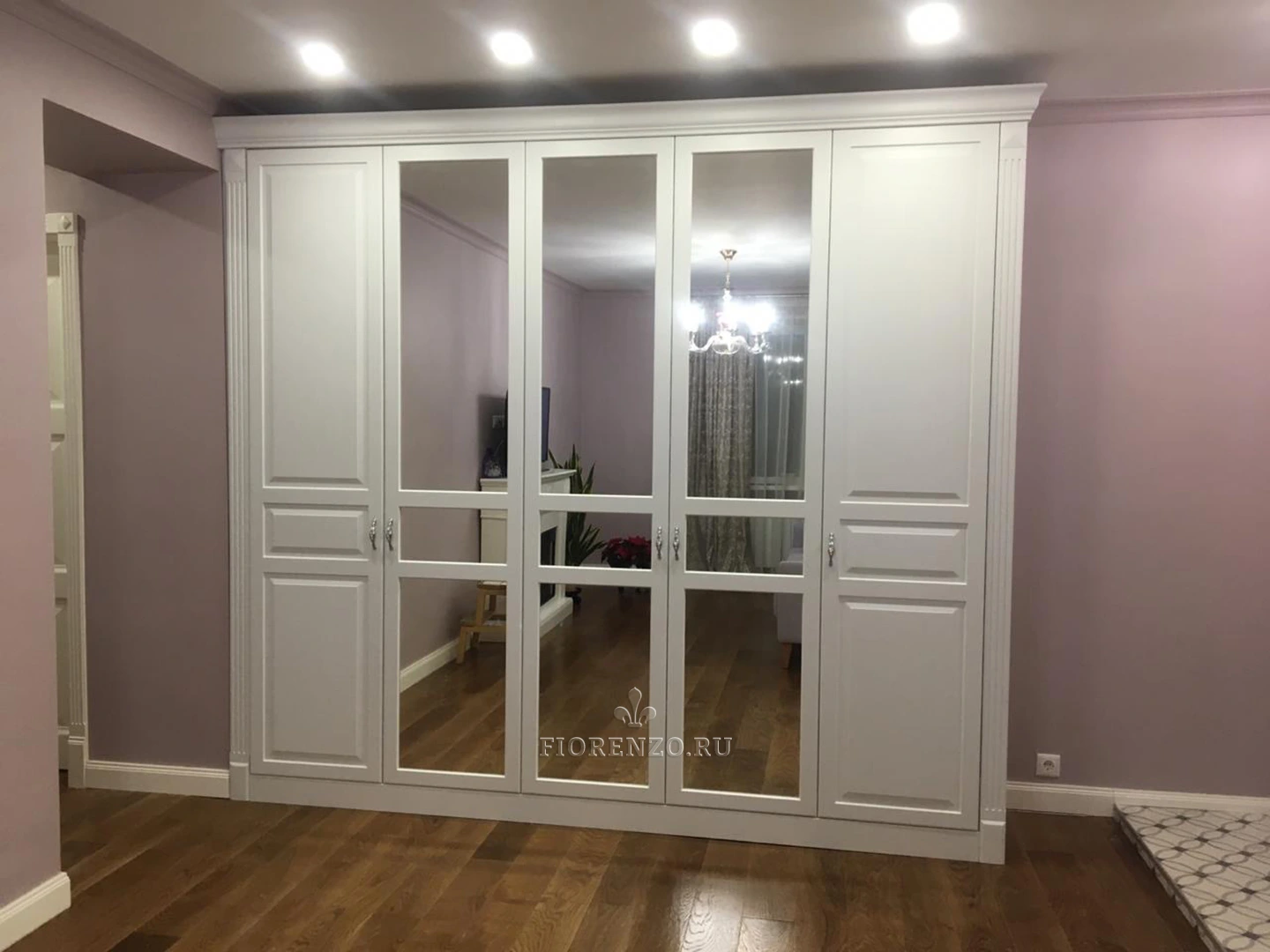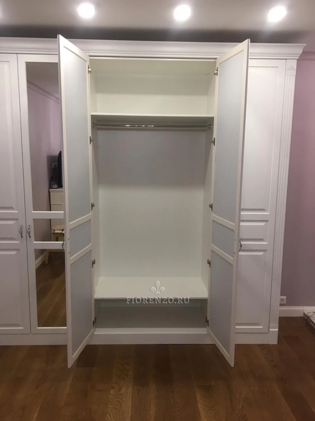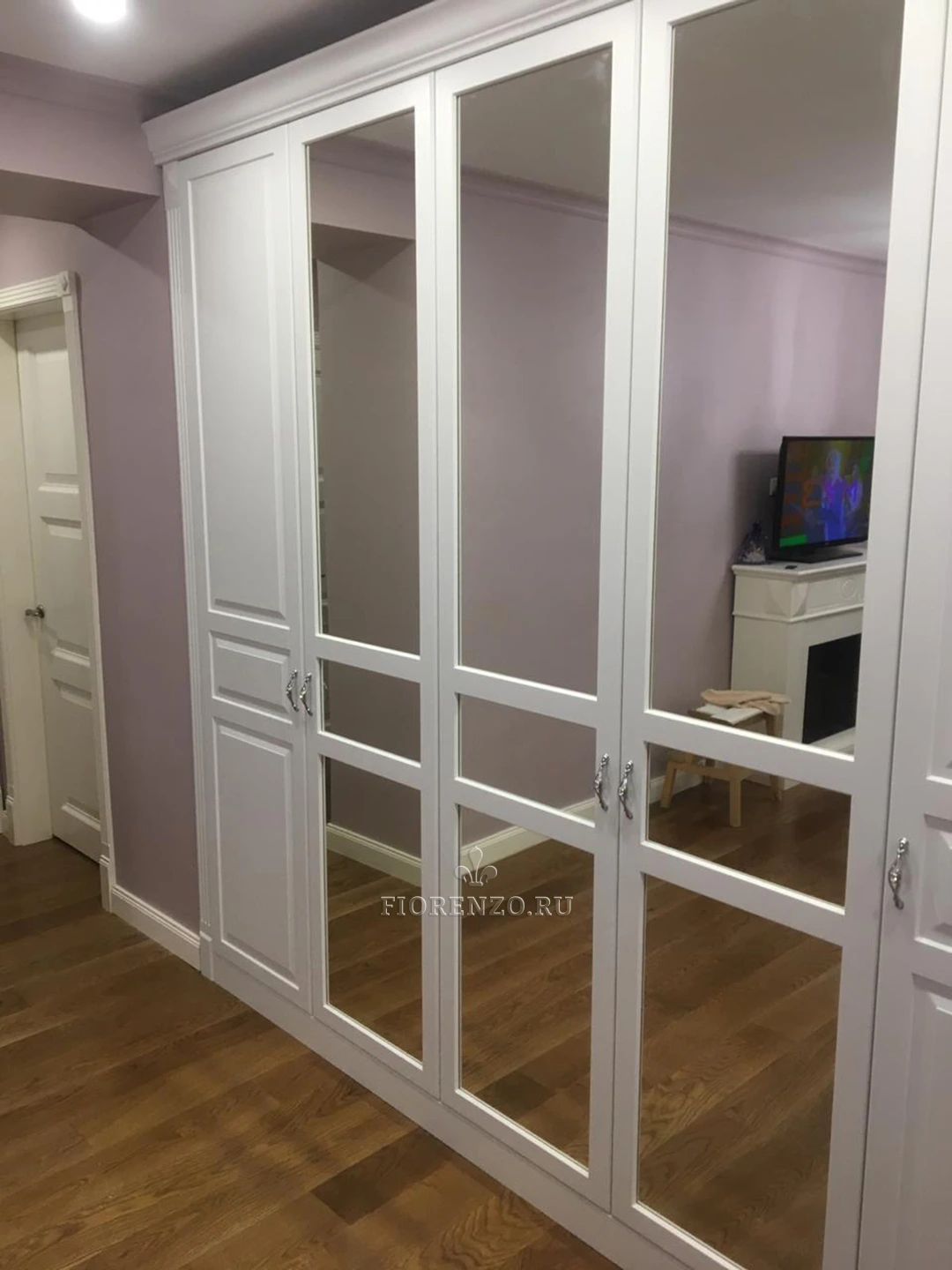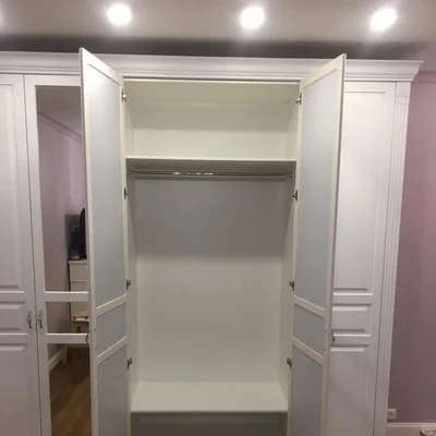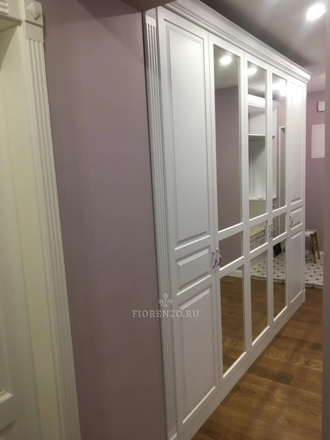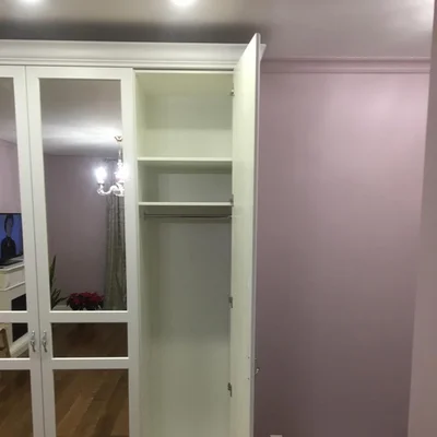 Шкаф в классическом стиле белого цвета был изготовлен для нашей заказчицы Ольги в г.Подольск. Шкаф «Касали» был установлен в гостиной, сразу при входя из коридора прихожей. Поскольку комната просторная, можно было установить обычный шкаф с распашными фасадами.
