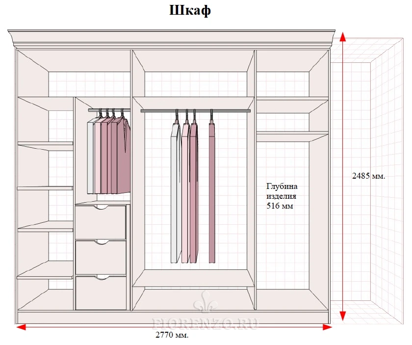 Если Вам нужен такой же шкаф, но по Вашим индивидуальным размерам, вы можете прислать нам размеры на почту или Ватсап, и мы сделаем предварительный расчёт. Изготовление происходит в зафиксированные в договоре сроки, и мы предоставляем после сборки гарантию на изделие.