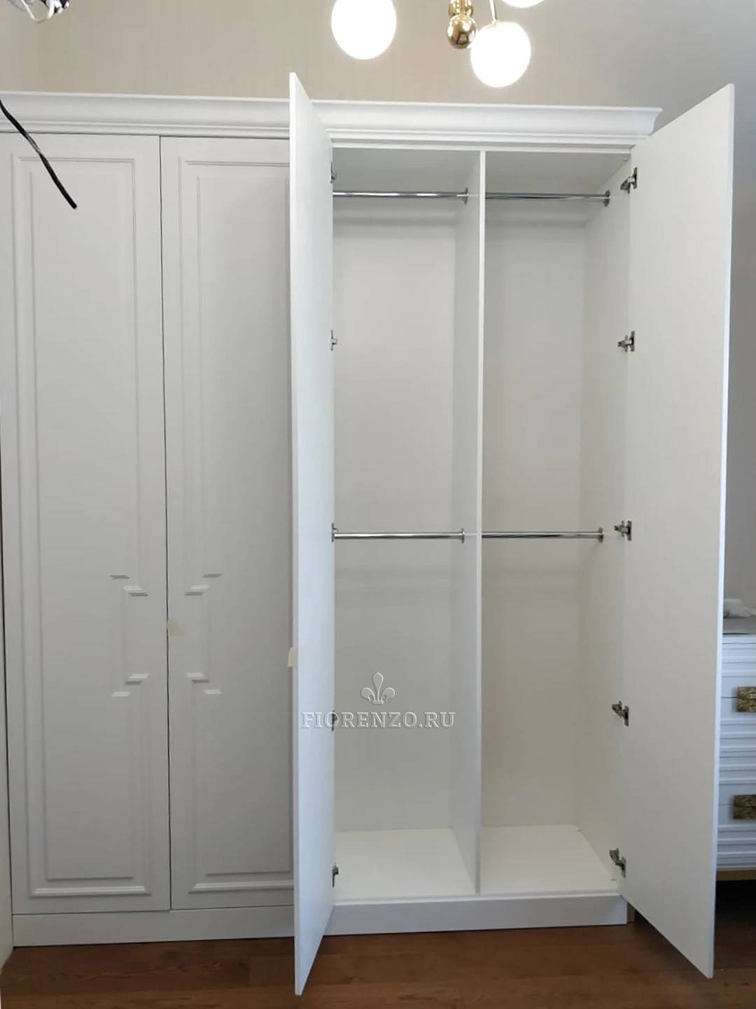 Мастерская FIORENZO предлагает функциональную, нетривиальную мебель для интерьеров современных квартир и домов. Решения имеют привлекательный дизайн, долговечные, надежные, изготавливаются из материалов высокого уровня качества. Белый шкаф «Аньоне» в спальню подойдет для размещения постельного белья, полотенец, одежды. Стиль неоклассик относится к универсальным, подходит для большинства интерьеров.
