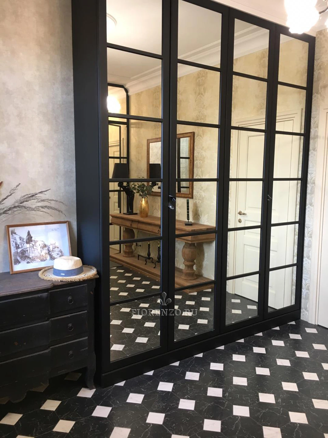 Мастерская «Фиорензо» составляет индивидуальные проекты мебели для разных помещений. Заказывайте корпусный, встроенный шкаф с нужным наполнением по индивидуальным замерам. Эта узкая модель для прихожей «Агордо» не займет много места, визуально расширит пространство за счет зеркальных створок. Раскладка предотвращает появление эффекта излишней «холодности». Смотрится готовое решение гармонично, имеет универсальный дизайн.