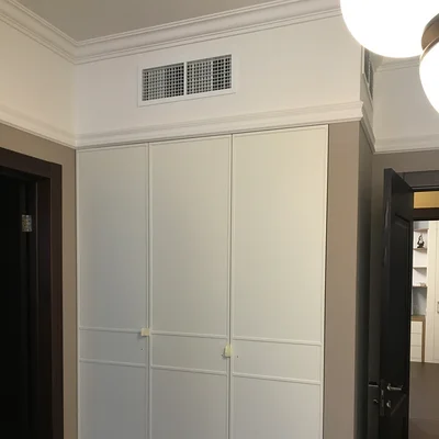 Фасадная часть изготовлена из крашеного МДФ с оттенком по каталогу RAL и имеет филенчатую форму. Корпуса мебели выполнены из немецкого ЛДСП Egger, обладающего экологическими сертификатами. Для ящиков и распашных дверок использовалась австрийская фурнитура Blum c доводчиками, которая отличается высокой износостойкостью.