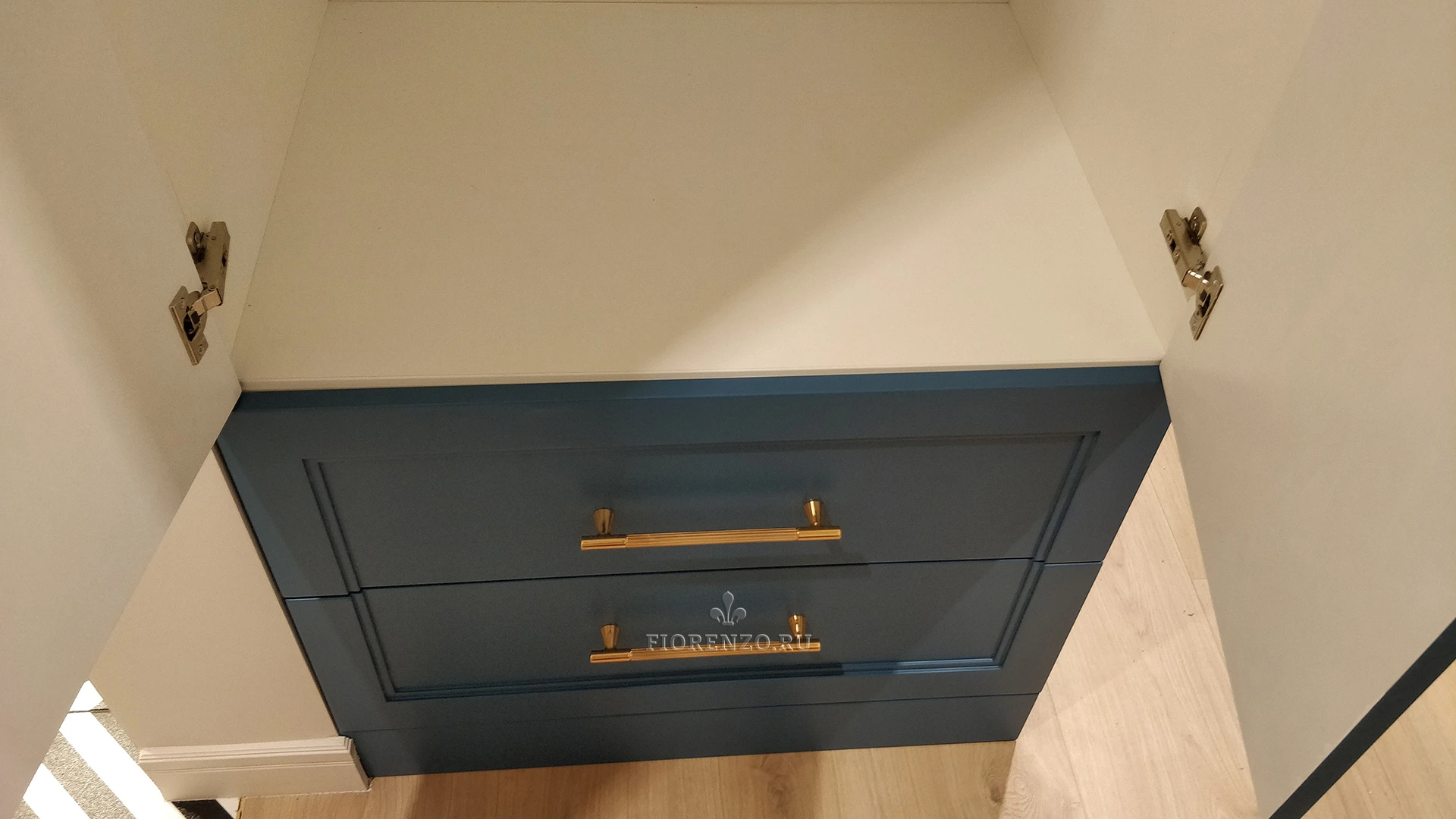 В гарнитуре идет два шкафа. В базе оттенок синий, но вы можете выбрать другой согласно палитре.