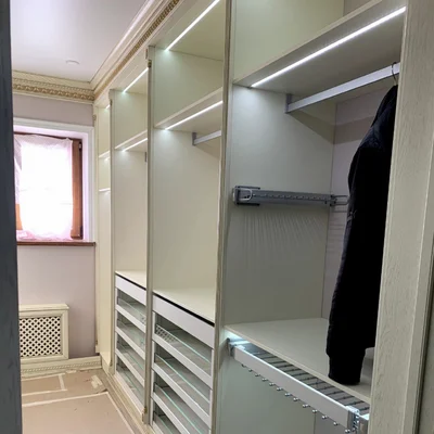 Заказывала гардеробную комнату по индивидуальным размерам, и результат меня просто впечатлил! Все было выполнено аккуратно и в срок, а материалы — качественные и экологичные. Гардеробная идеально вписалась в нашу комнату и выглядит очень стильно. Очень довольна!