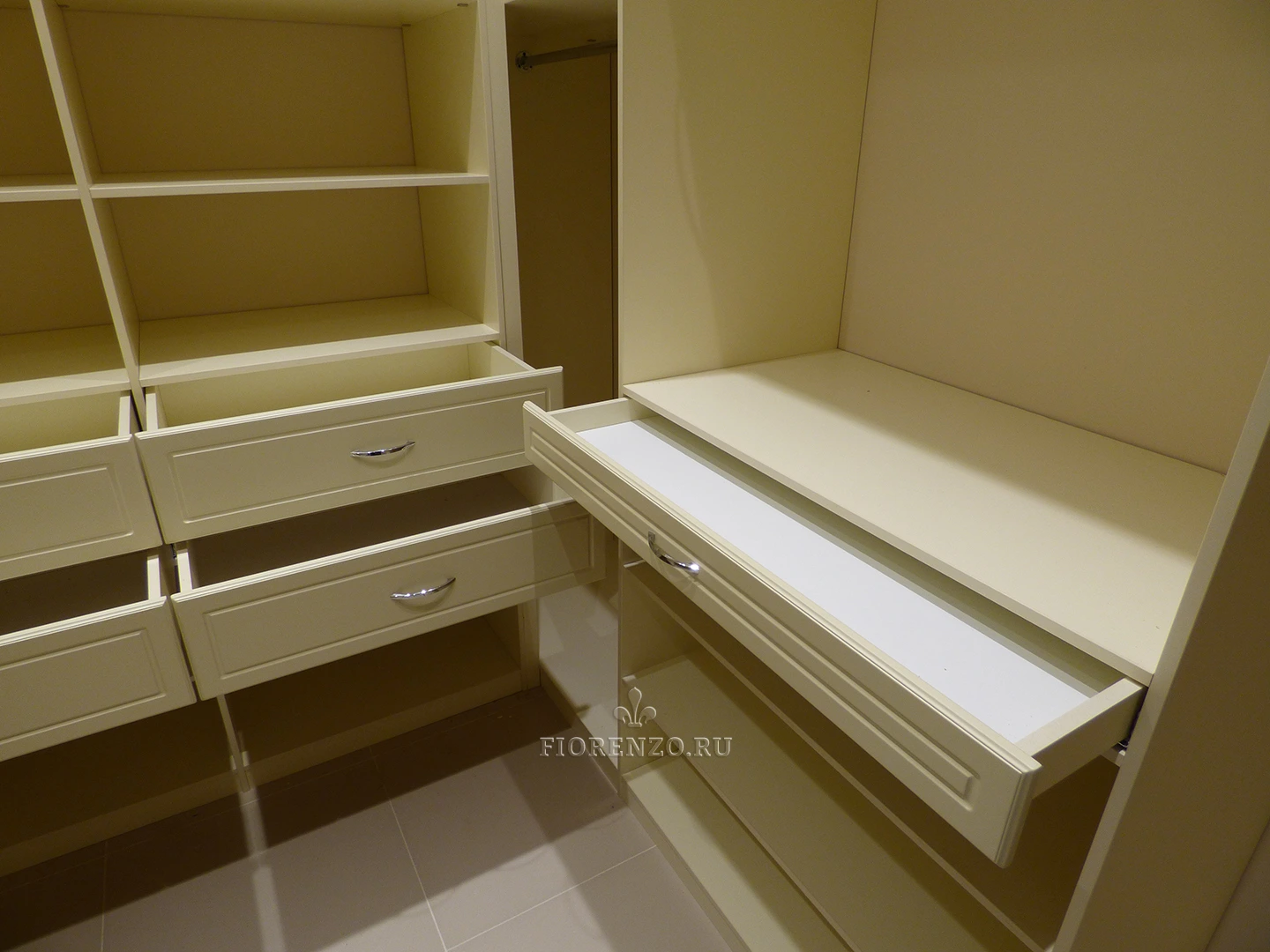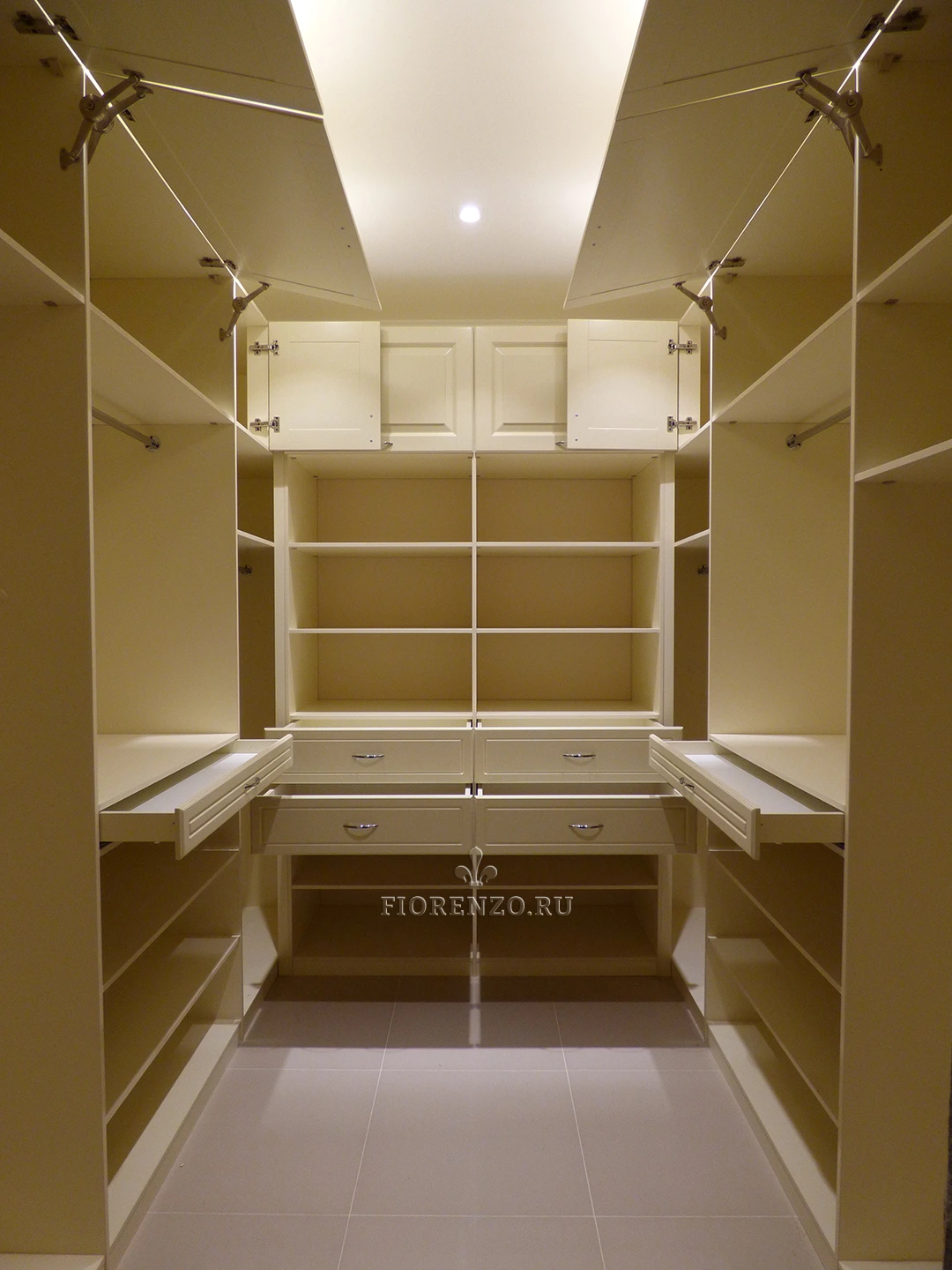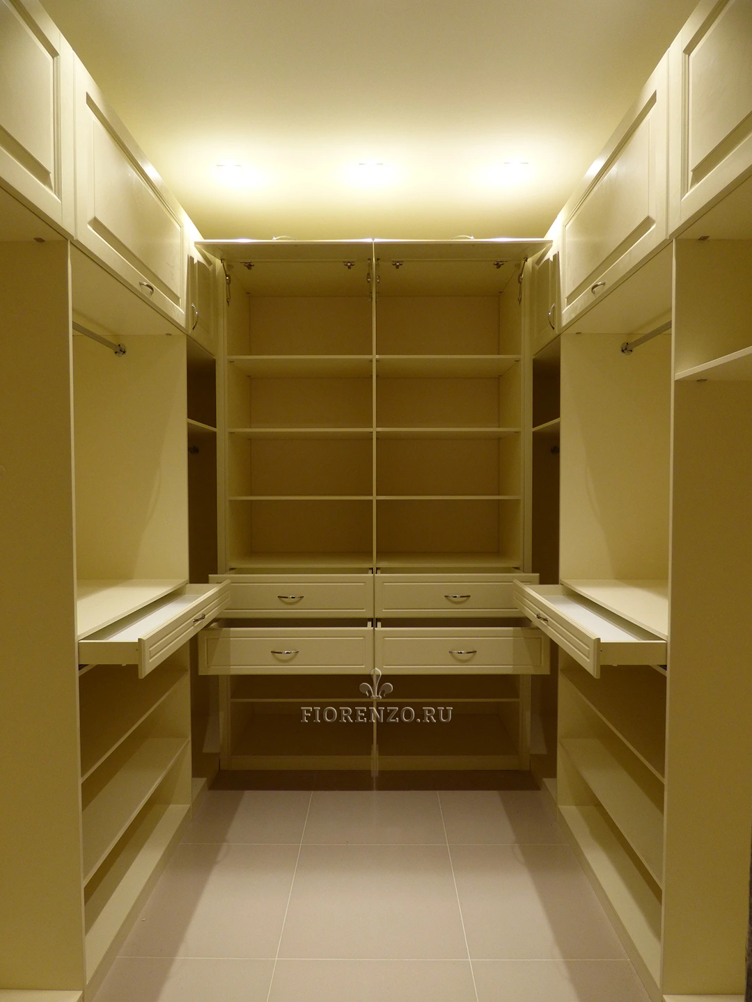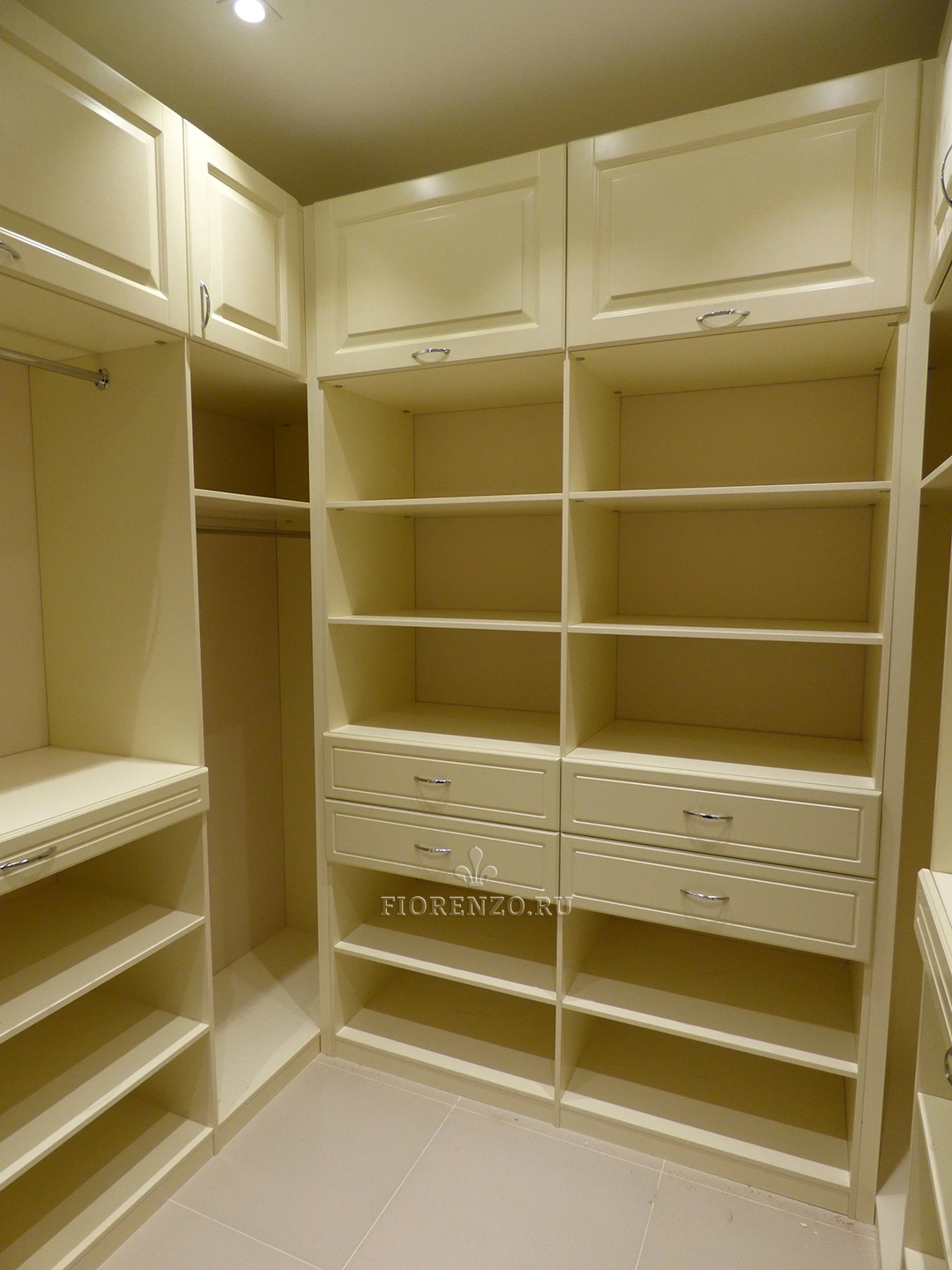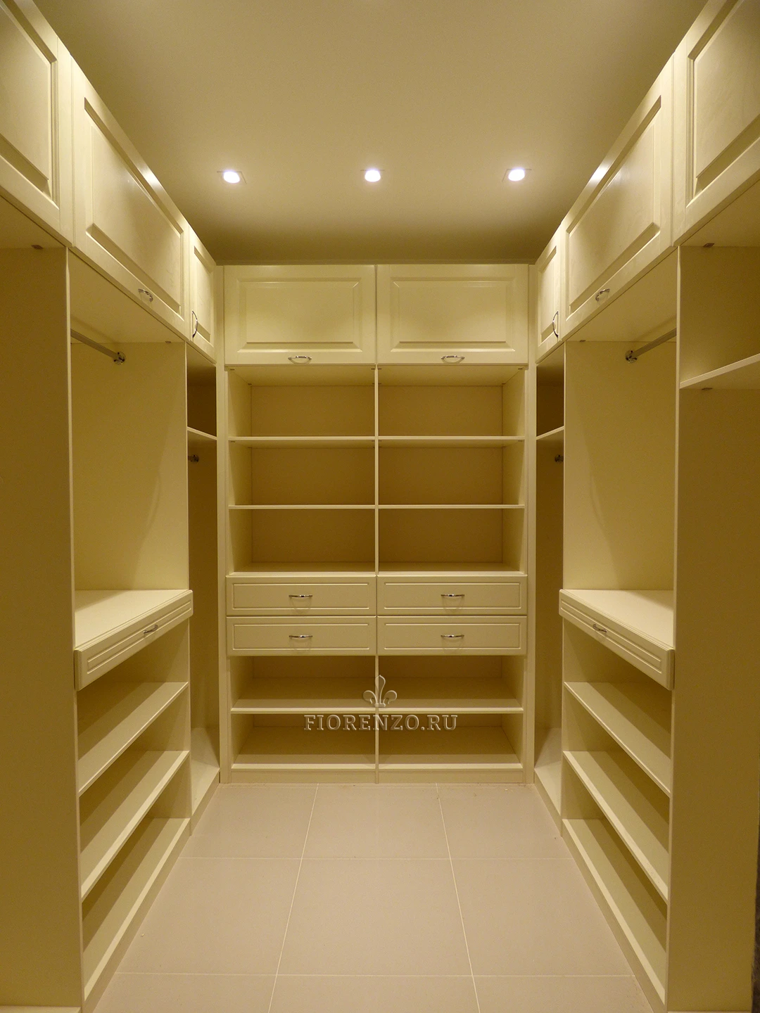 Гардеробная комната «Минден» П-образной планировки отличается повышенной вместительностью – в ней с легкостью может разместиться одежда и вещи большой семьи из четырех-пяти человек. Мебель изготовлена по индивидуальным размерам с учетом конкретных условий клиента, поэтому все его потребности удовлетворены по максимуму. Классический дизайн, стильный вид, высокая практичность и эргономичность, надежная фурнитура – вот те преимущества, которыми отличается данный проект. Дизайнеры компании «Фиорензо Мебель» способны разработать вариант П-образной гардеробной под заказ, максимально подходящий под ваши условия, а профессиональный монтаж позволит не переживать за износостойкость и функционирование без поломок на протяжении гарантийного срока и после него.