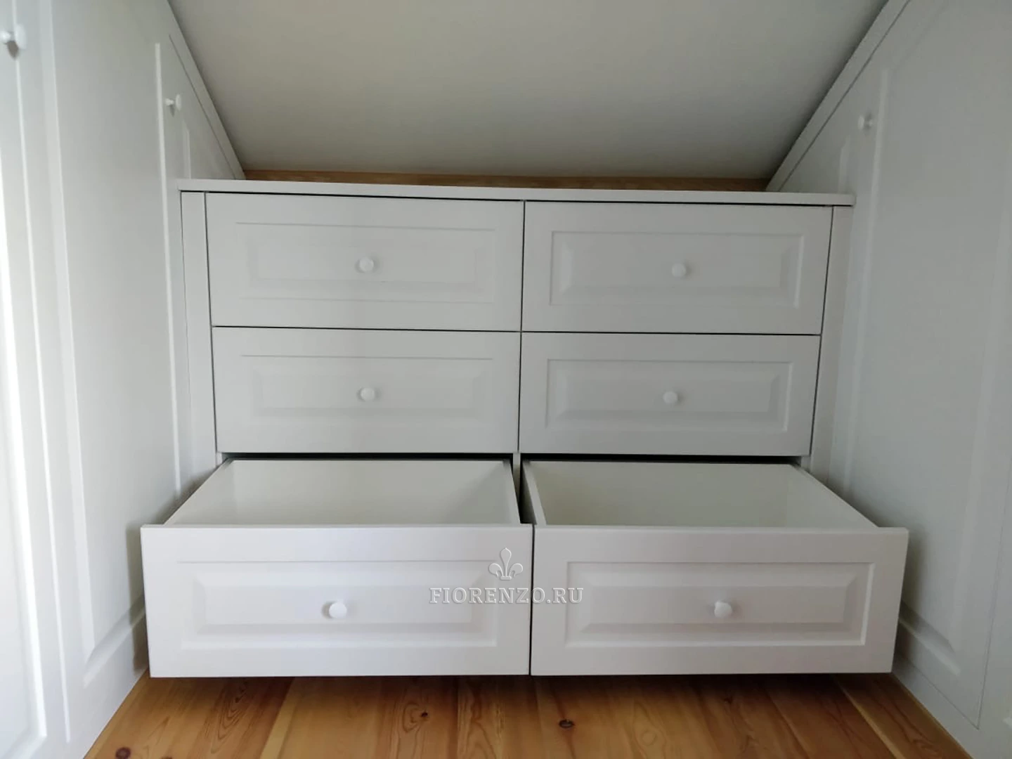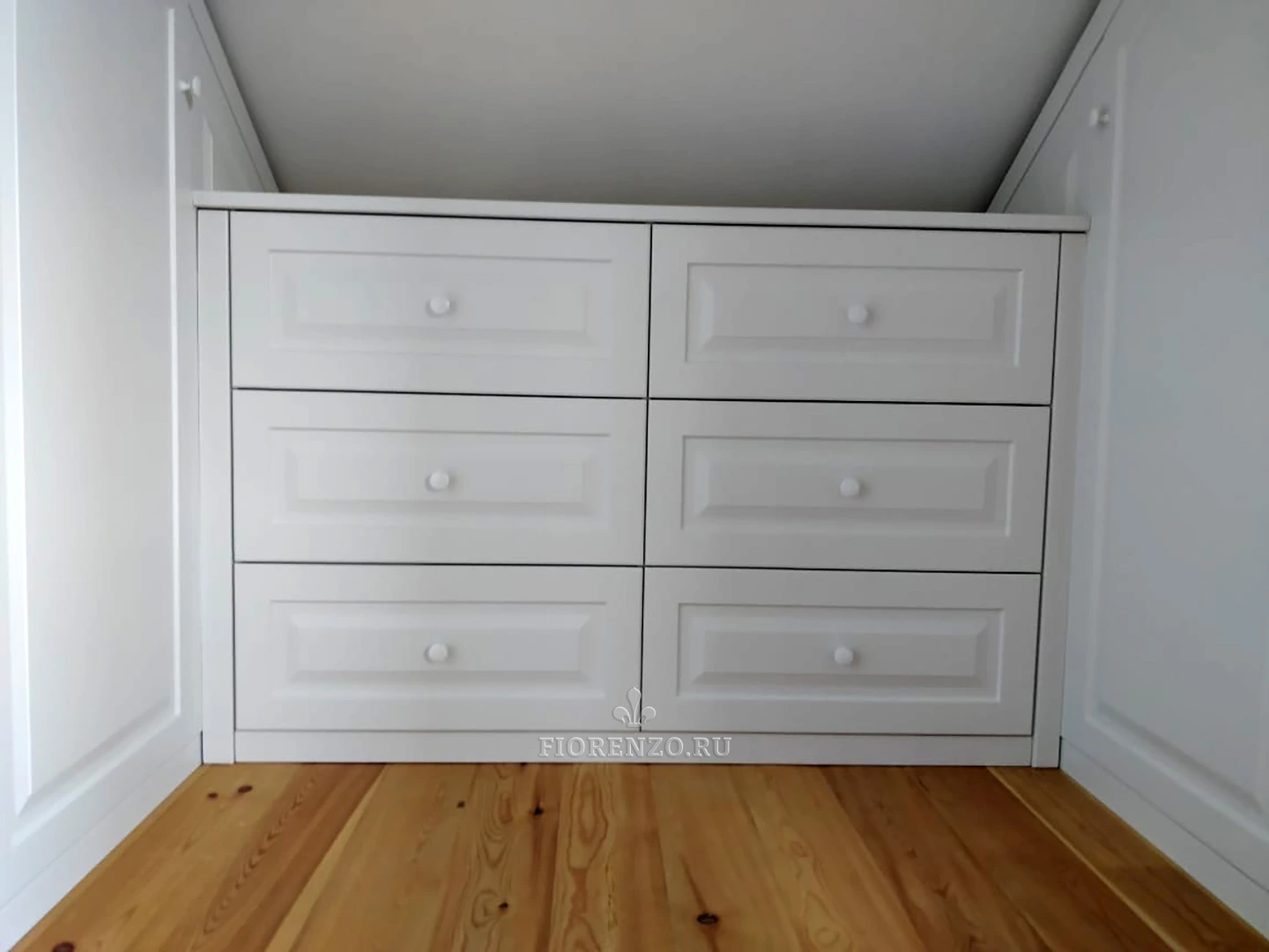 Заказала гардеробную для мансарды по индивидуальным размерам. Цвет — светлый дуб, что отлично подошло к потолкам и остальной отделке комнаты. Мебель выполнена из качественных экологичных материалов, стиль — современный и функциональный. Теперь у нас больше места для хранения, и комната выглядит намного уютнее!
