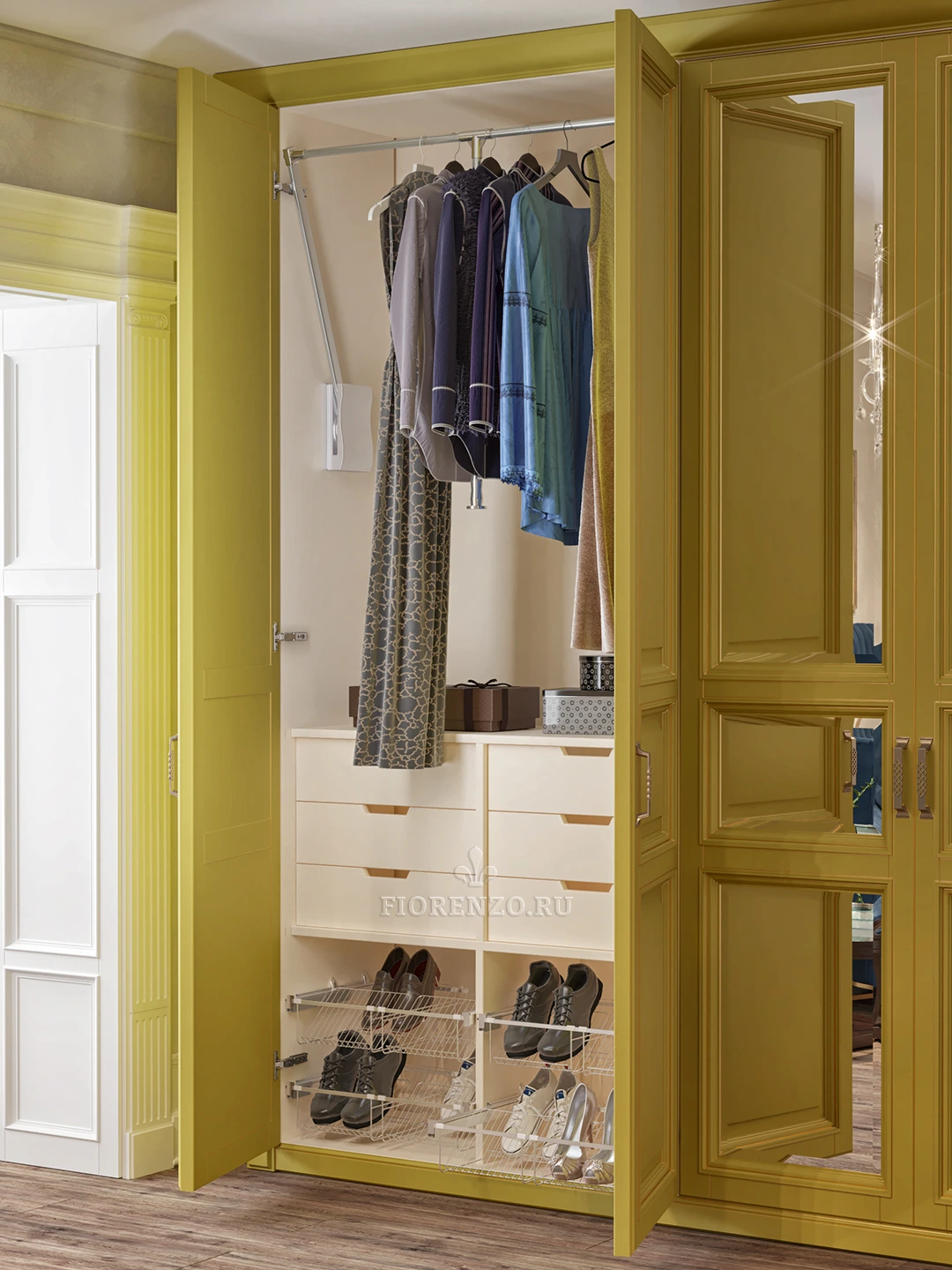 Классический стиль гардеробной идеально подходит для просторных помещений, делает их одновременно строгими и уютными, комфортными и привлекательными внешне. Эргономика мебели находится на очень высоком уровне, так как каждая деталь, ящичек, полка и прочие элементы продуманы и реализованы профессионалами.