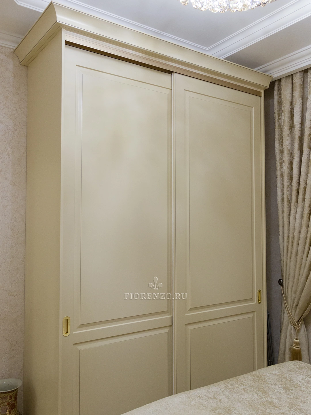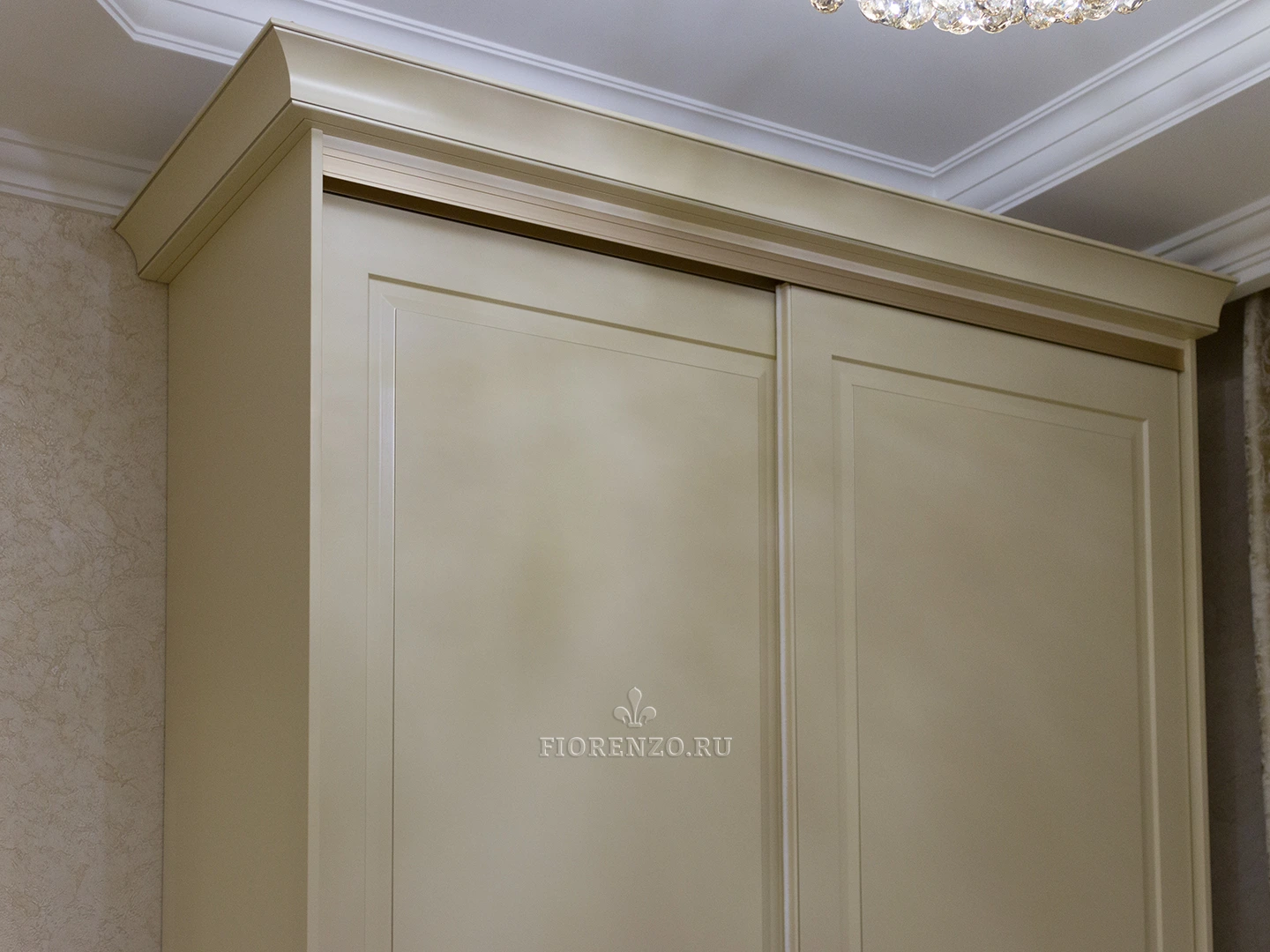 Самое популярное решение для небольшой спальни – шкаф-купе «Ордона» в классическом стиле. Данная модель может быть изготовлена по индивидуальным размерам клиента, в любом цвете по палитрам RAL и NCS. Фасады также можно сделать индивидуальными, добавив в них зеркало или фигурную фрезеровку, патинирование или второй цвет. Классическая стилистка подчеркнута декоративными элементами: карнизом и фигурным цоколем.