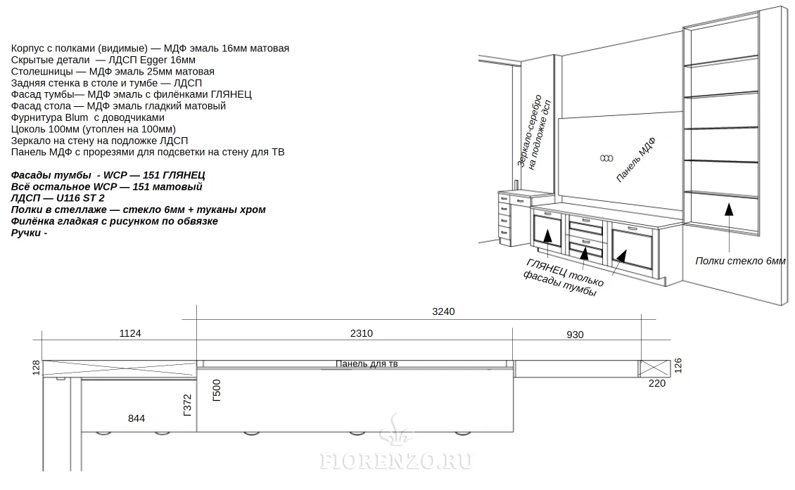 Если в мебели встречаются окрашенные МДФ детали, декоративные элементы. Есть элементы сложной ЧПУ фрезеровки, шлифовки и окраски – в виду сложного технологического процесса.