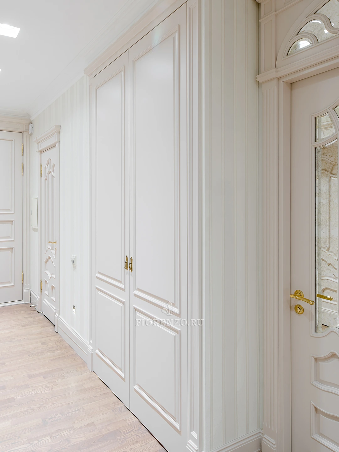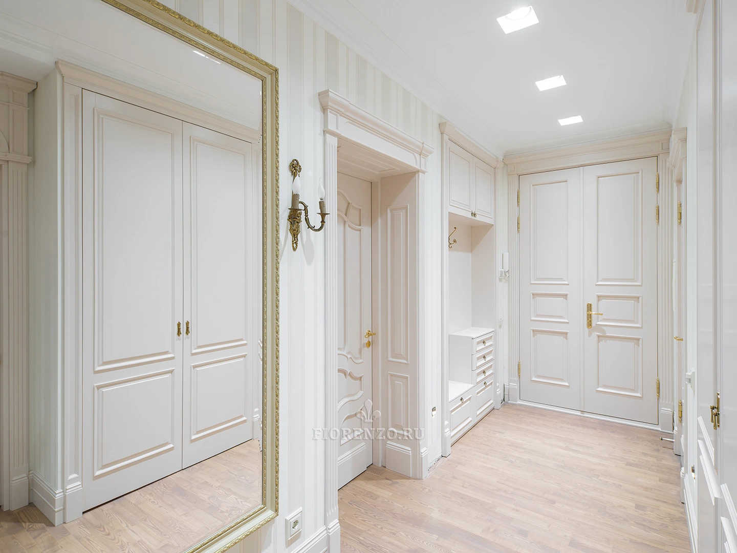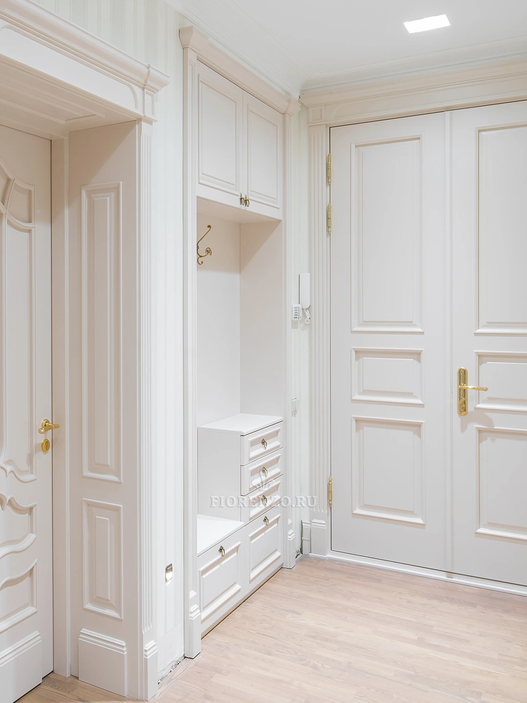 Внутренности изготовлены из немецкого ЛДСП торговой марки Egger. Фасадная часть и декоративные накладки сделаны из крашеного качественного МДФ по палитре RAL. Установлены петли и направляющие для ящиков от европейского производителя HARN. Мебель для холла под заказ монтирована специалистами компании «ФиорензоМебель», поэтому имеет гарантию.