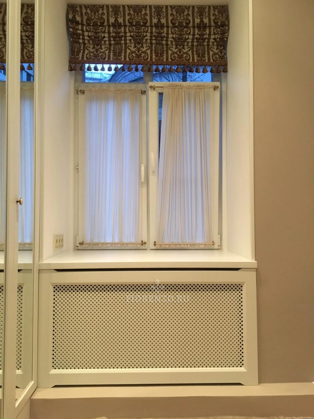 Тем, кто ищет необычную мебель для гостиной, Фиорензо предлагает такой оригинальный П-образный шкаф. Он предназначен для установки во всю стену, нишу посередине используют для дивана, софы, можно купить большое мягкое кресло. Другой вариант – заполнение внутреннего пространства тумбой с телевизором.