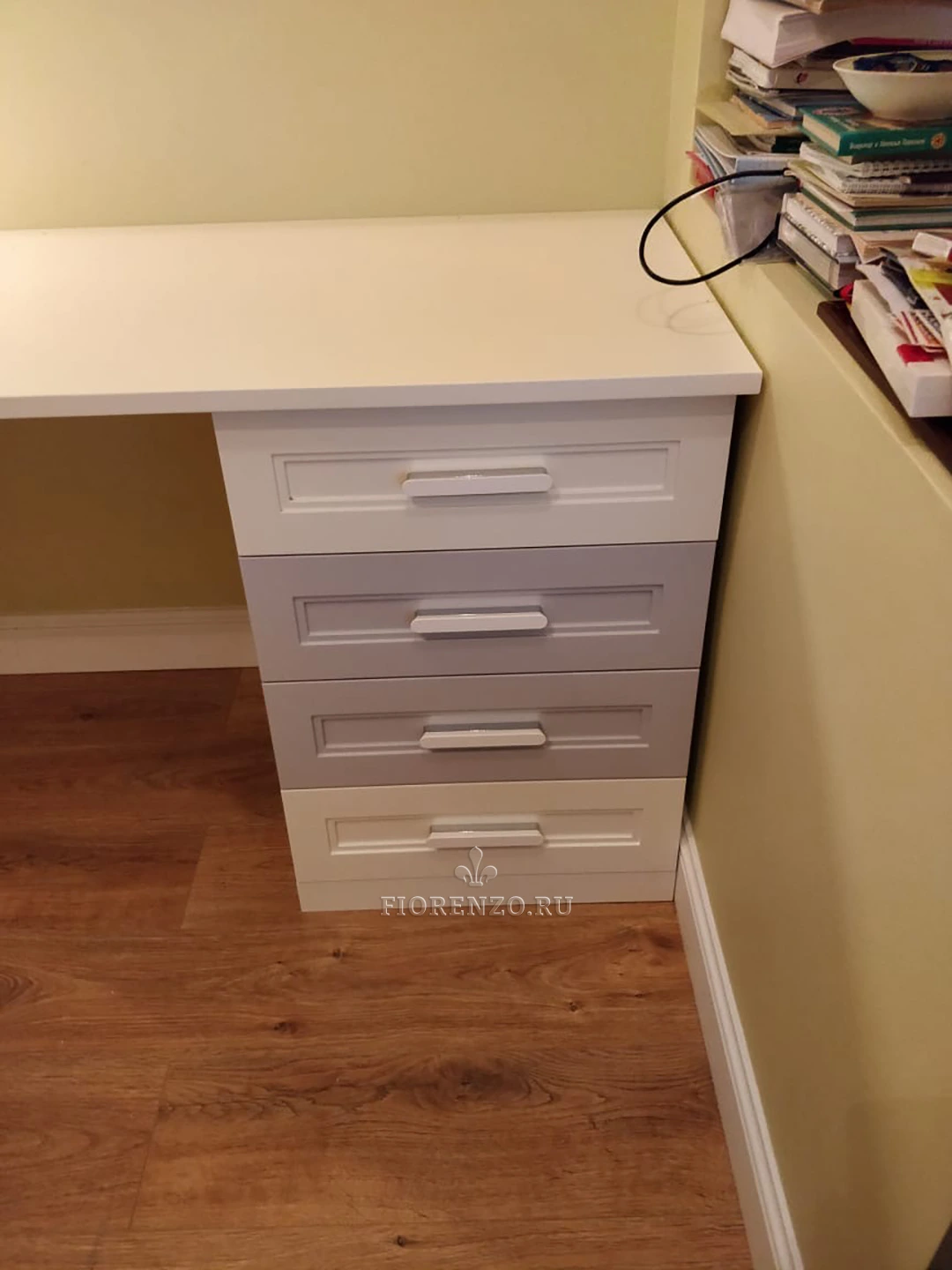 Компания «Фиорензо» известна не только роскошными, но и простыми, лаконичными решениями. Такое рабочее место для детской не займет много места, позволит разместить все необходимое. Стол из МДФ идет с тумбой справа (в ней 4 выдвижных ящика с разноцветными фасадами).