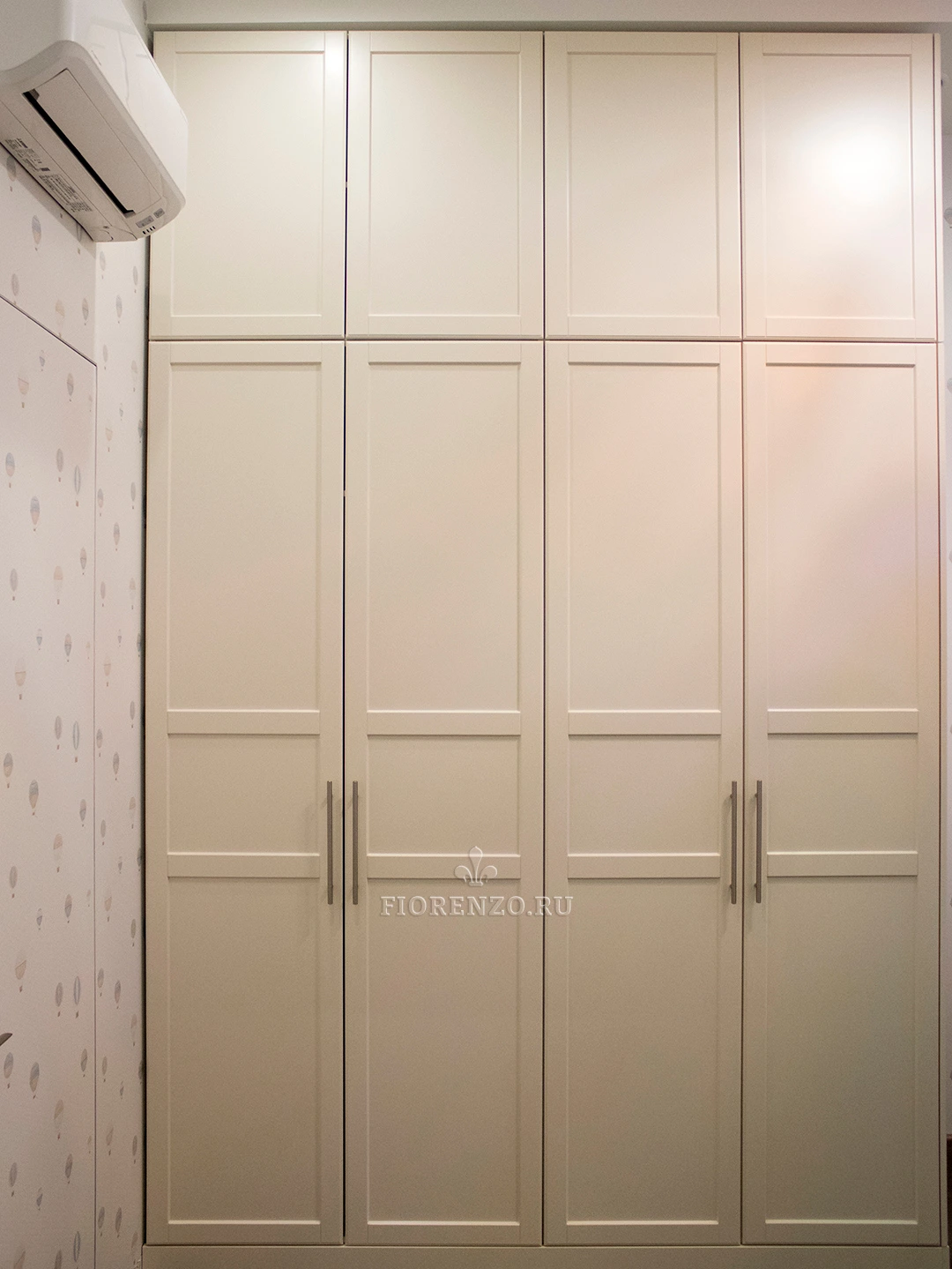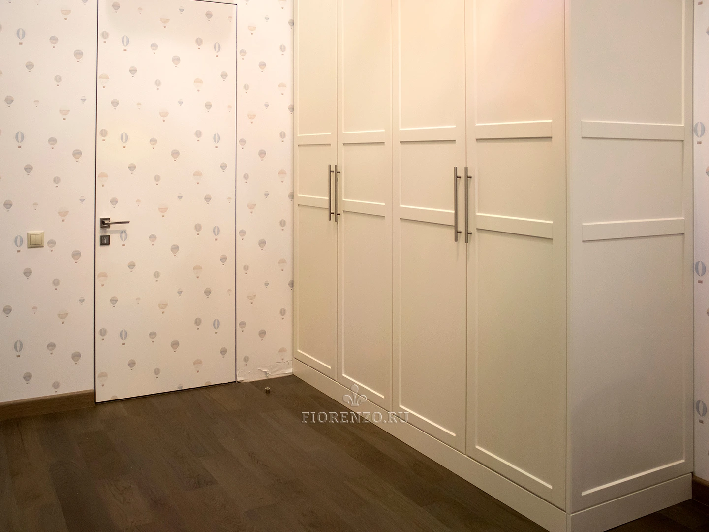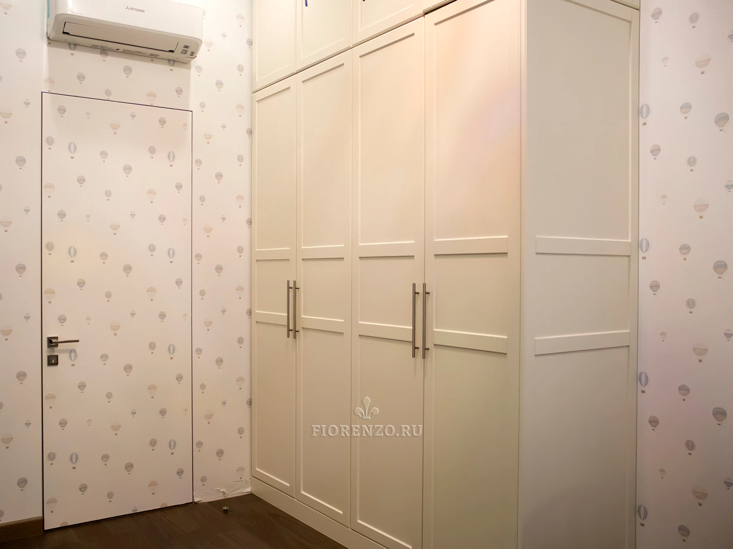 Специалисты мебельной фабрики «Фиорензо Мебель» разработали оригинальный проект шкафа в детскую «Эрфурт» в стиле неоклассика, для которого характерно объединение традиционных филенчатых фасадов, цоколей и карнизов с модерновой фурнитурой из матового металла. Мебель обладает высокой практичностью и эргономичностью, имеет хорошую вместительность и привлекательный внешний вид. Дизайнеры готовы создать идентичный проект распашного шкафа в детскую комнату, в котором все элементы и начинка будут адаптированы под ваши требования и особенности помещения. Можно использовать различные варианты оформления и материалы изготовления. Доступна мебель из ЛДСП Egger, шпонированного или крашеного МДФ, массива натуральной древесины.