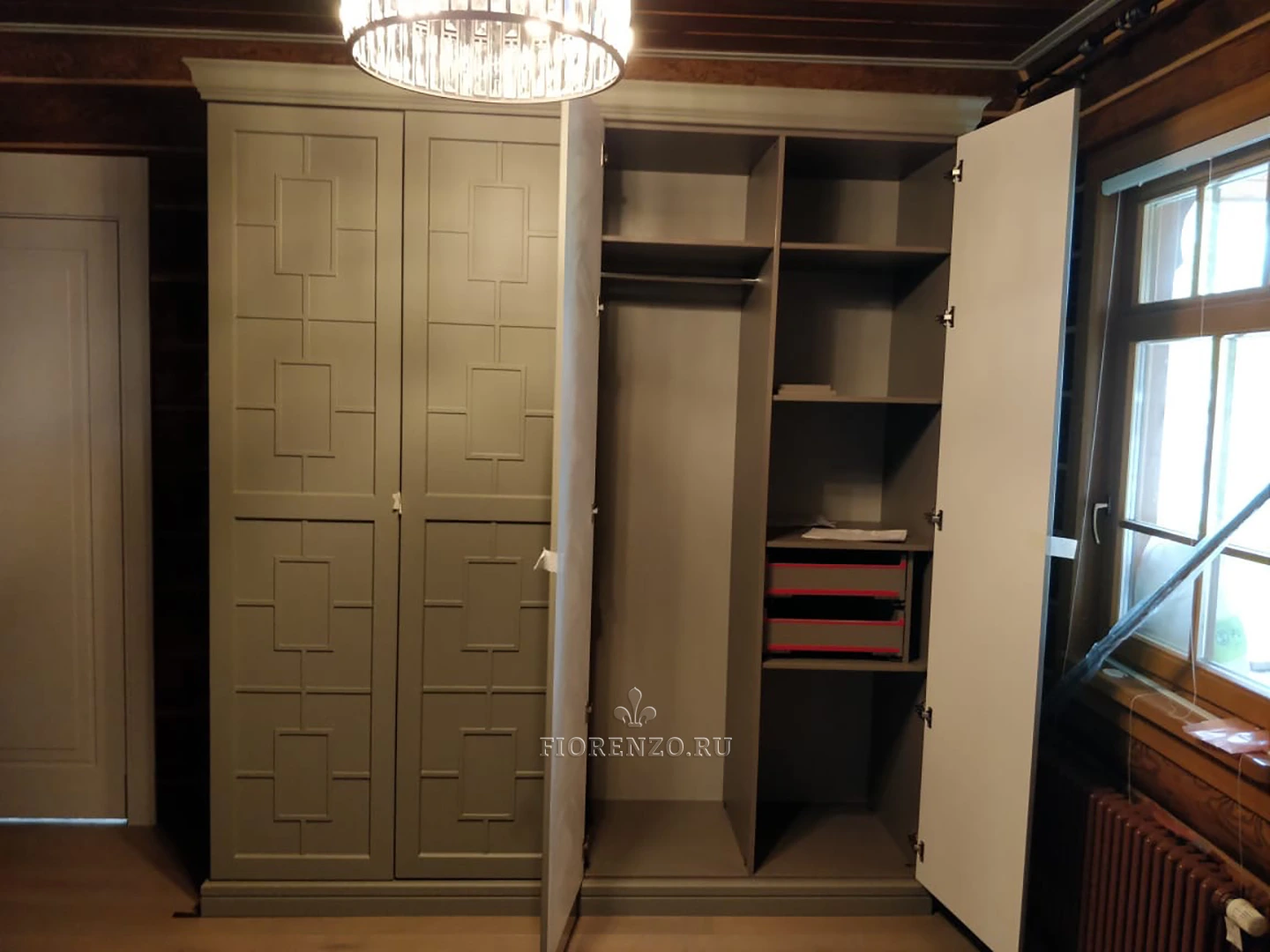 Мастерская «Фиорензо» занимается проектированием дизайнерской мебели по индивидуальным проектам. Выбирайте нейтральную универсальную или оригинальную дизайнерскую мебель. Распашной шкаф в прихожую «Монбар» выглядит монументально, напоминает дворцовые залы. Рекомендуем поиграть с цветом, чтобы выбрать оптимальный для себя вариант.