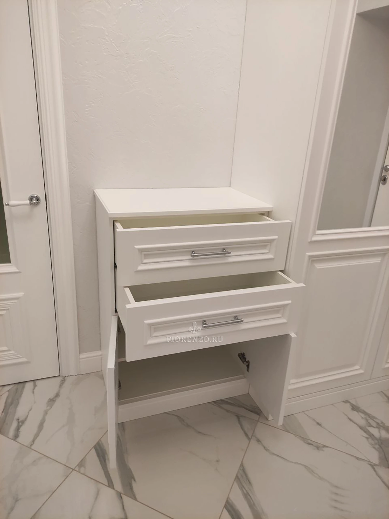 Функция и комплектация: полки, выдвижные ящики, штанга для верхней одежды. Подходит для прихожей, коридора и зоны входа. Изготовим по индивидуальным размерам, подберём фурнитуру и покрытие в тон интерьера.