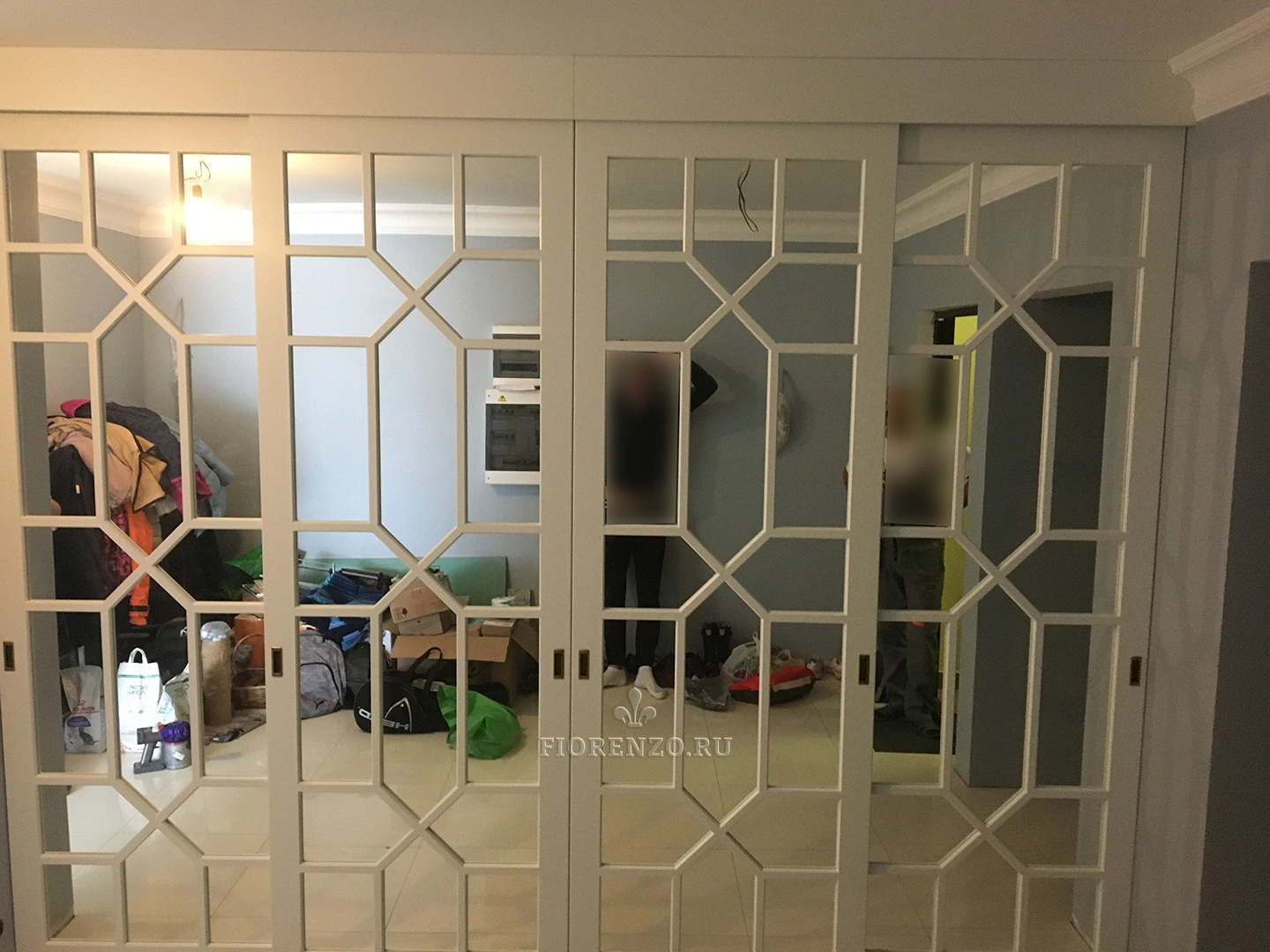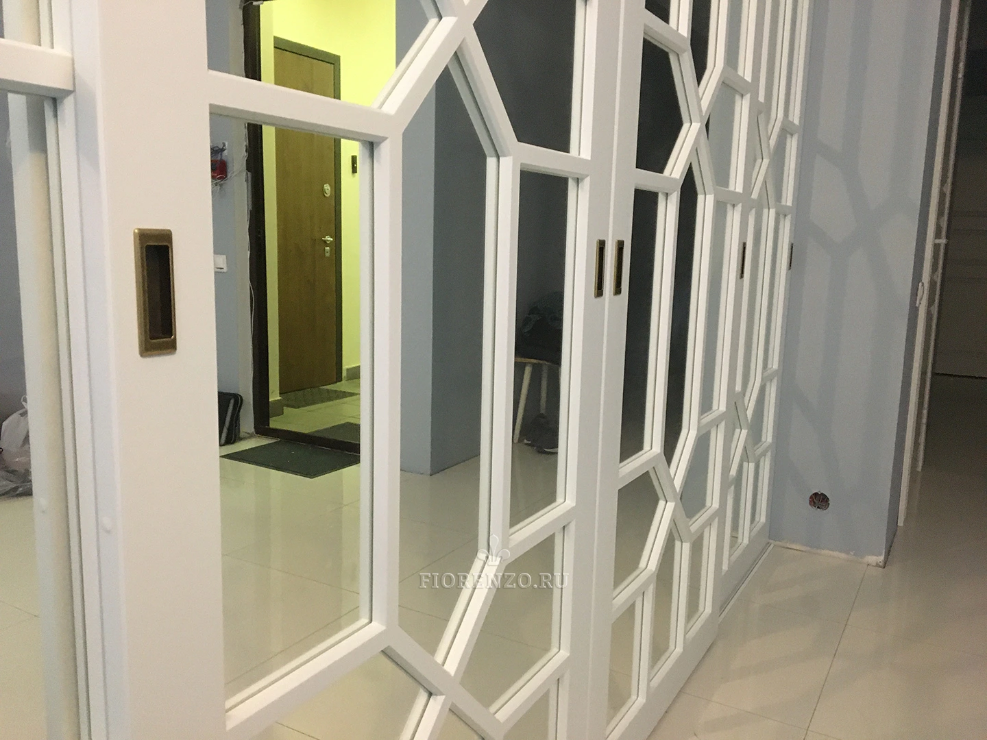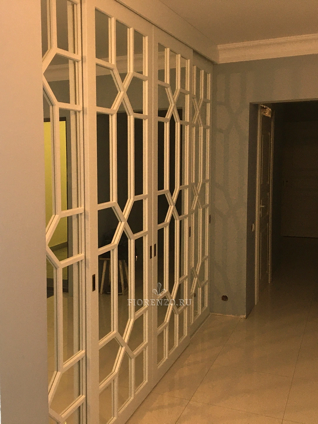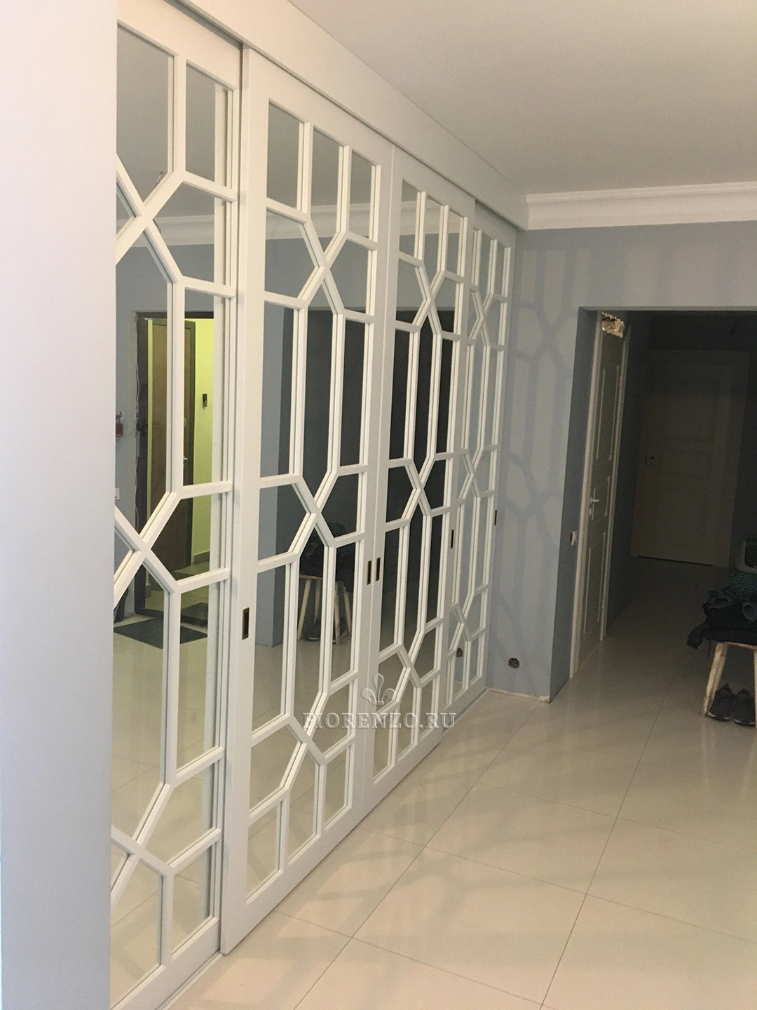 Мастерская «Фиорензо» – лидер по изготовлению уникальных дизайнерских решений. Заказывайте мебель по типовому, индивидуально разработанному проекту на ваше усмотрение. Ограничения по стилям, бюджету, концептам отсутствуют. Раздвижная межкомнатная перегородка из МДФ «Нардо» была спроектирована специально для прихожих, учитывает конфигурации, особенности открытых квартир с планировкой типа студии. Часто перегородку используют вместо шкафа-купе. Она занимает всю свободную стену, закрывает внутренние функциональные элементы – полки, штанги, ящики, отсеки.