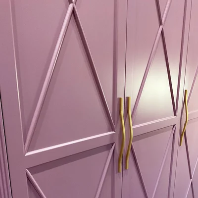 Декоративные элементы, такие как элегантные металлические ручки, добавляют изысканности и подчеркивают внимание к деталям. Плавные линии, нежный розовый оттенок фасадов и высококачественные материалы делают эту мебель не только красивой, но и невероятно приятной на ощупь.