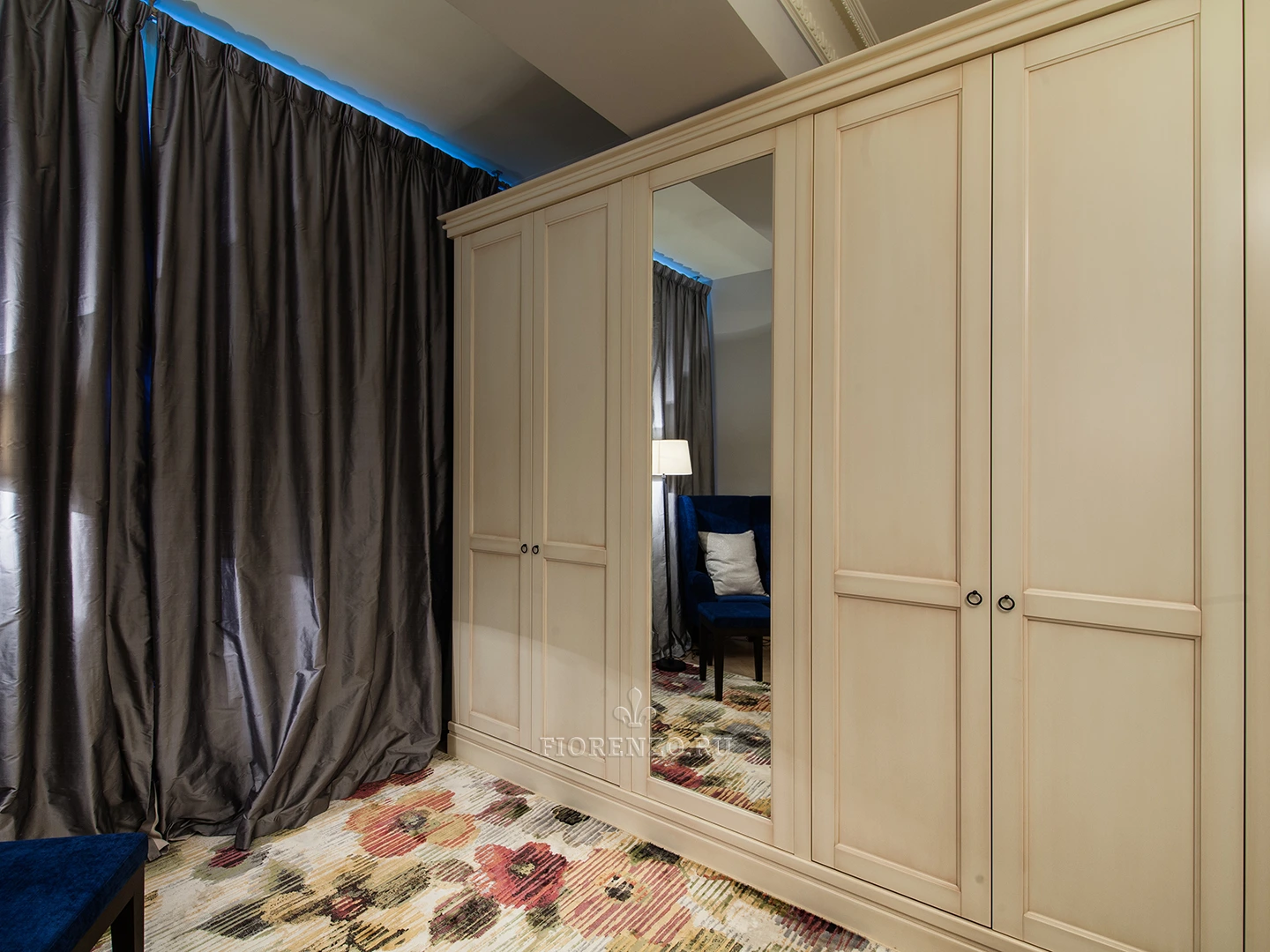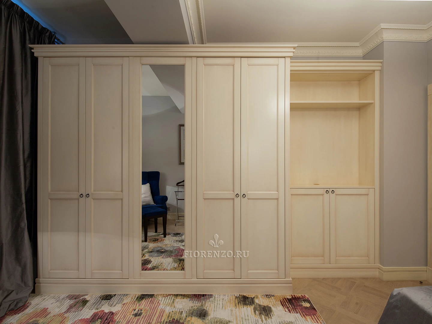 Дизайнер при разработке данного проекта максимально учитывал пожелания хозяев квартиры, поэтому классический шкаф для гостиной получился вместительным, его начинка полностью удовлетворяет требования заказчика. На фасадах мебели применили эффект патирования, который повысил эстетическую ценность, сделал изделие стильным и солидным. В компании «Фиорензо Мебель» можно сделать подобный шкаф по вашим размерам, что позволит ему идеально вписаться в любую комнату дома или квартиры.