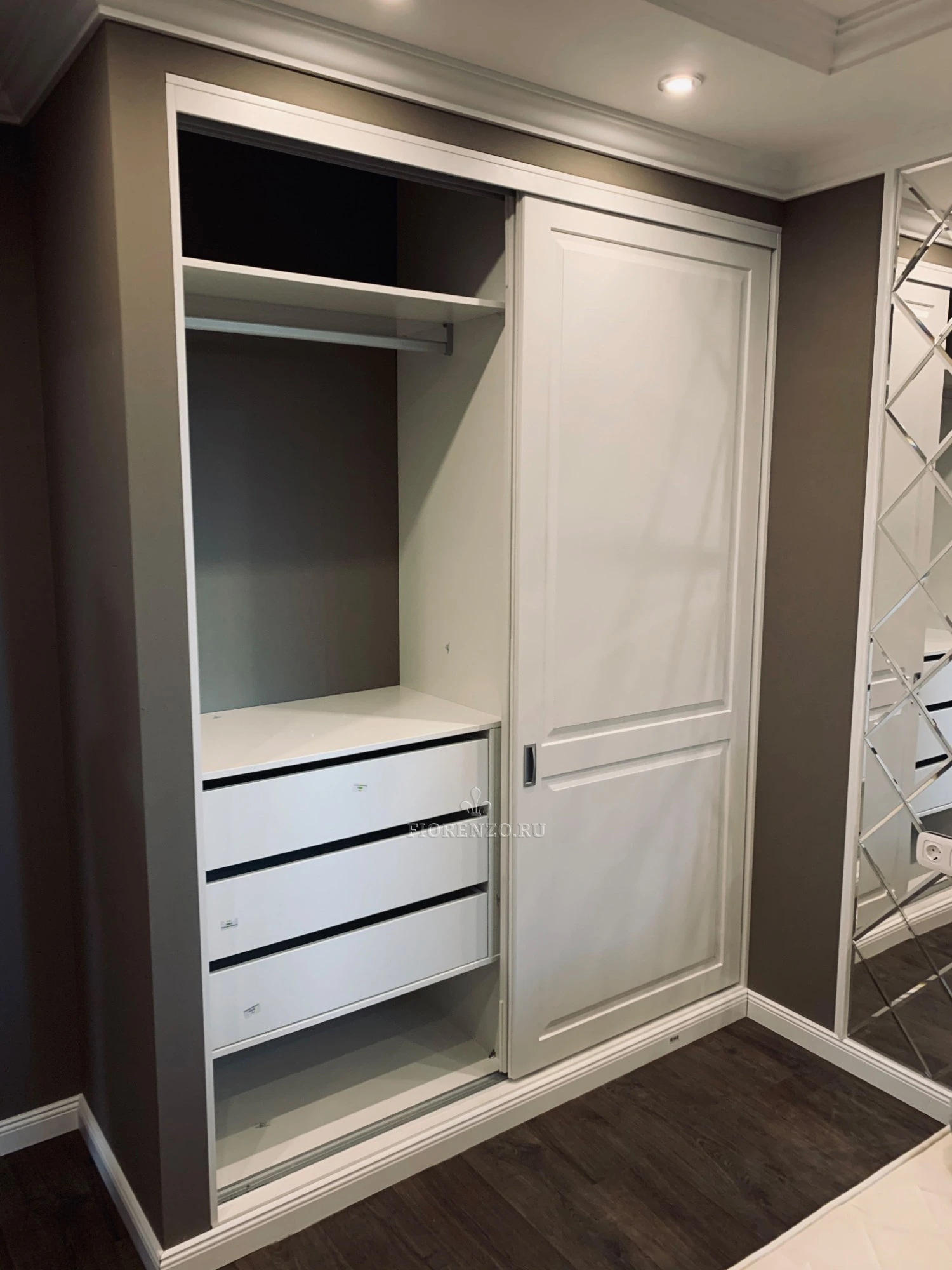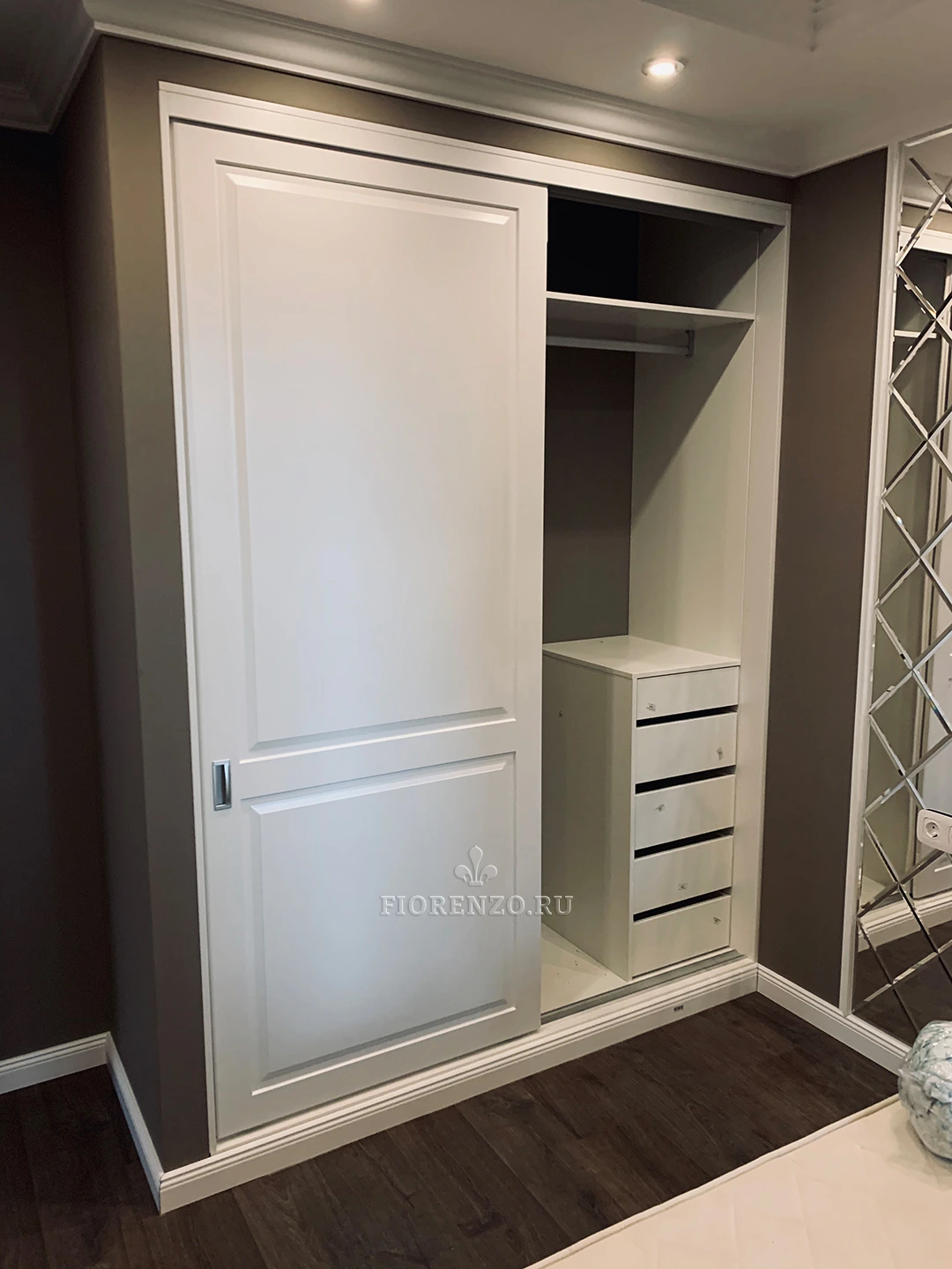 Мастерская мебели «Фиорензо» предлагает большой выбор интересных решений для современных интерьеров. Если вы искали что-то необычное, обратите внимание на шкаф-купе «Карини» с классическими дверьми. Он встраивается в нишу, поэтому экономит пространство и деньги на изготовлении проекта. Дверцы смотрятся эффектно, расставляют акценты и не перетягивают внимание на себя.