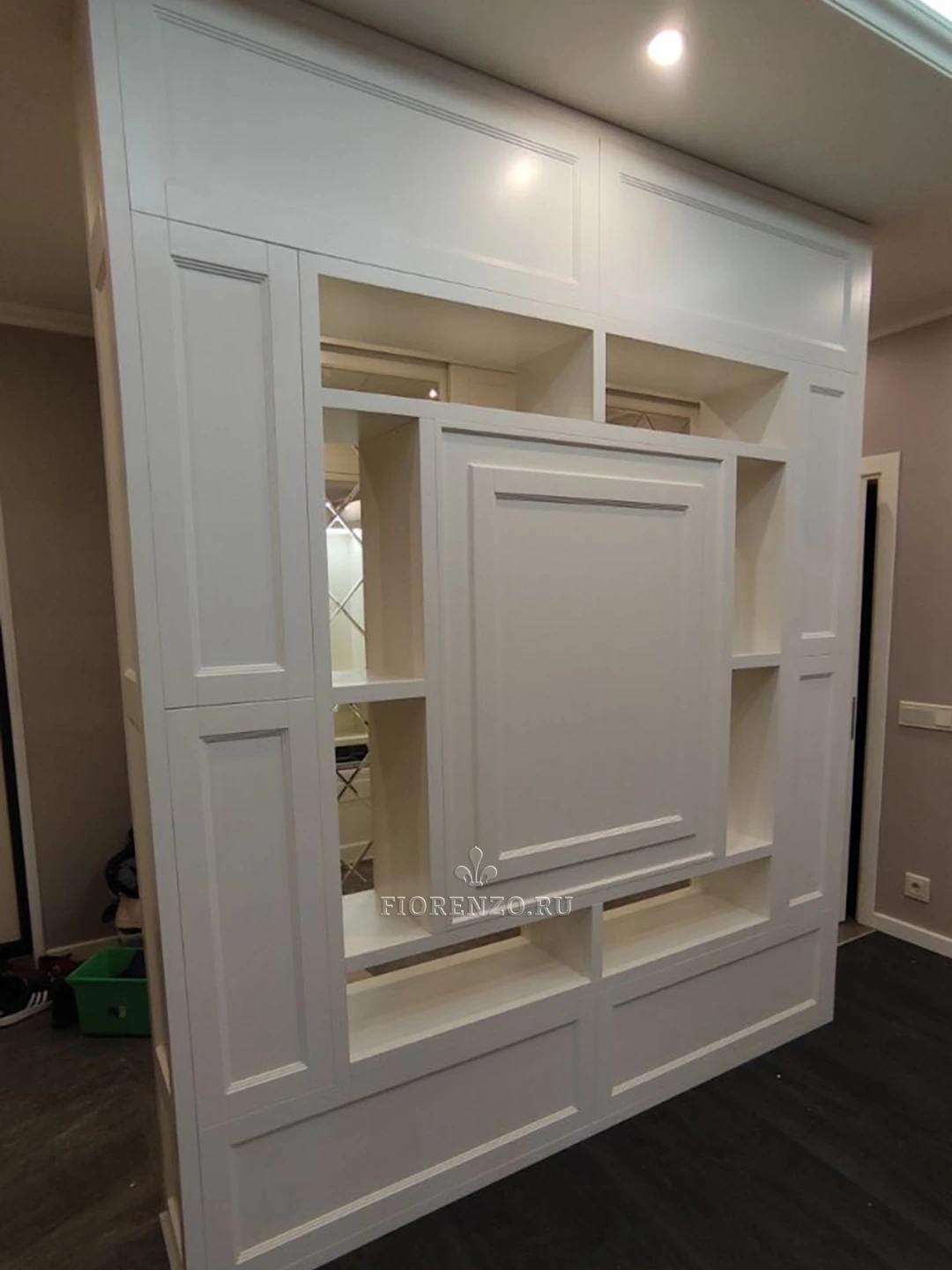 Компания FIORENZO производит дизайнерскую мебель из импортных материалов. Вы можете заказать конструкцию любой сложности для спальни, гостиной, детской, прихожей. Шкаф-перегородка «Меркато» в коридор станет стильным решением для оформления квартиры типа студии. Она выполняет декоративную функцию, зонирует пространство, создает условия для удобного хранения вещей. Шкаф двустороннего типа выполняет роль перегородки. С обеих сторон есть отсеки, закрытые и открытые (сквозные) полки.