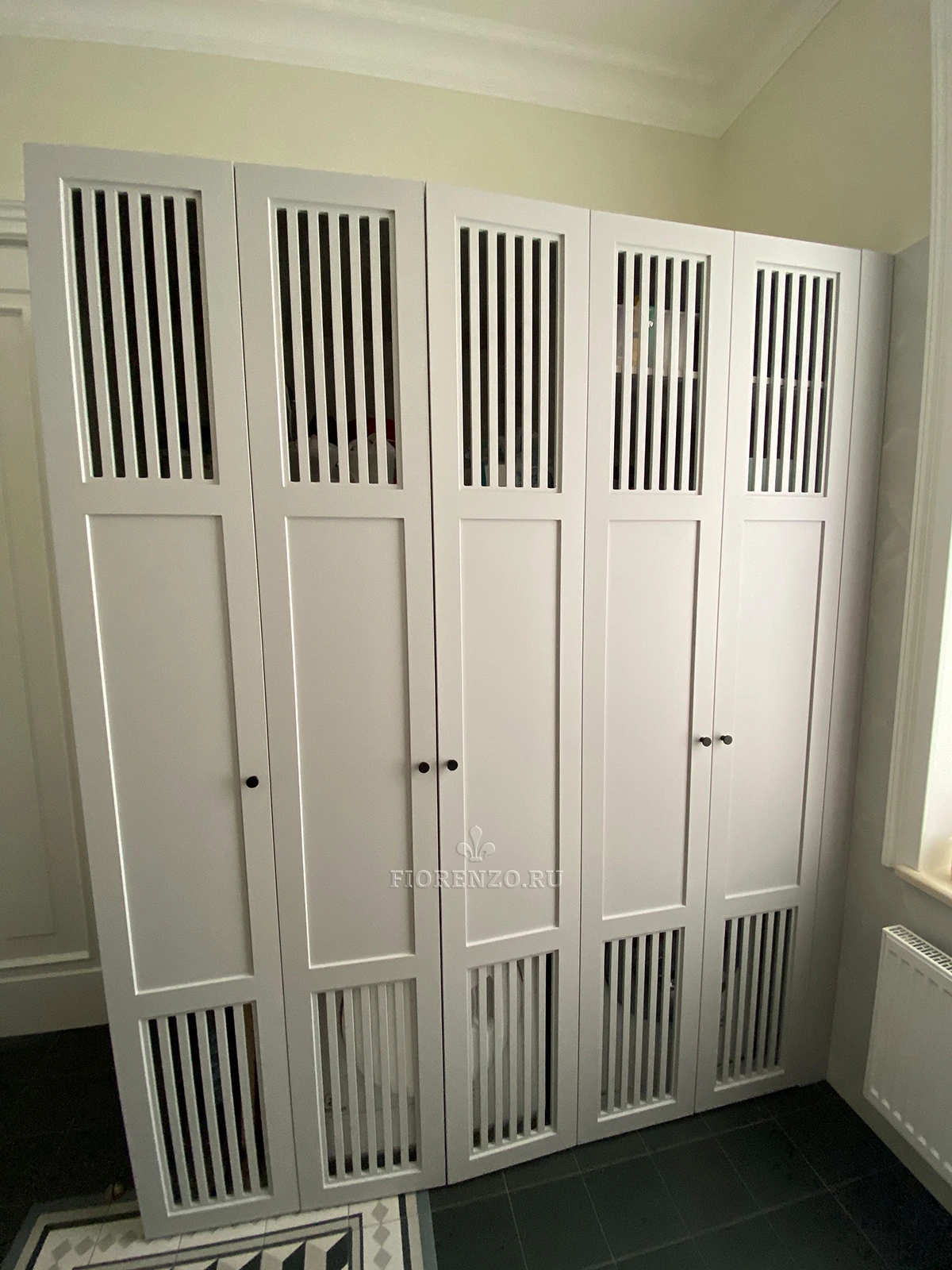 Шкаф под стиральную машину «Кливио» идет в оригинальном, свежем и стильном декоре. Он создает уют, не перегружает пространство. Створки комбинированные – верх и низ декорированы вертикальными жалюзи, центральные части глухие. Все особенности проекта: