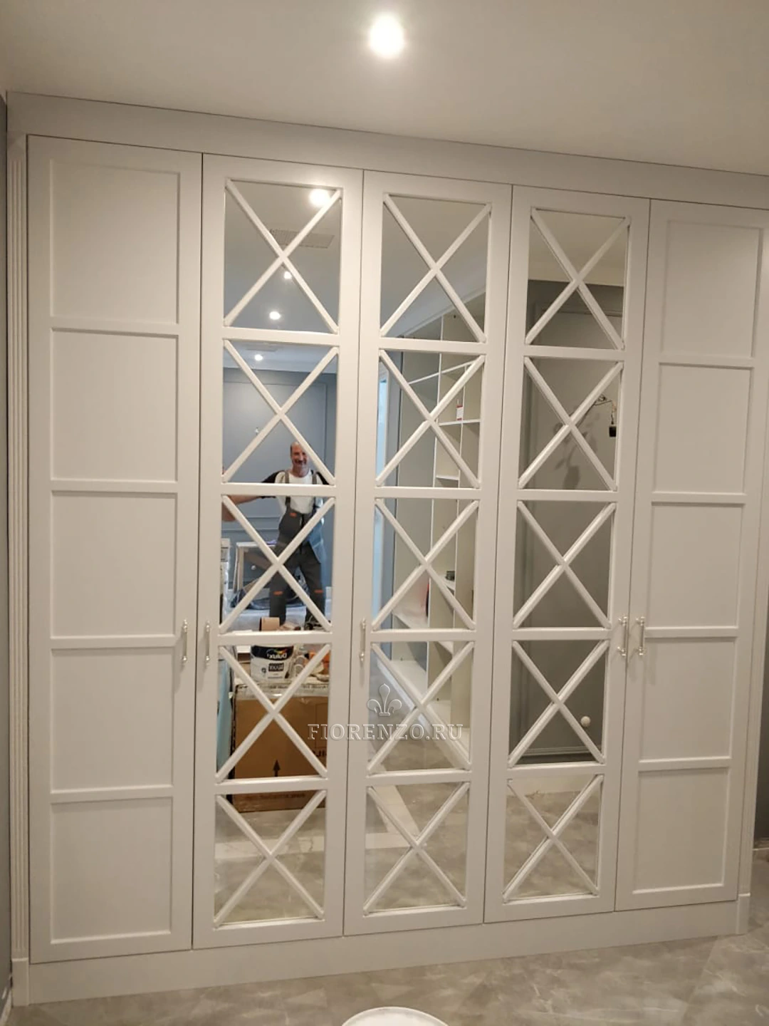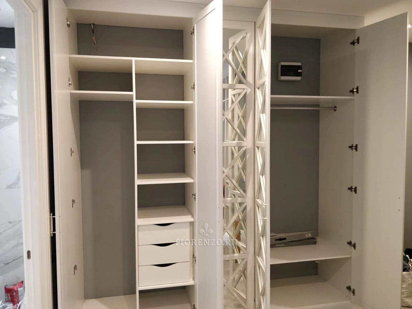 Высота в потолок создает вместительное антресольное пространство. Роль задних стенок выполняют несущие стены помещения. При желании выбирайте другой цвет для окрашивания фасадов под эмаль (работы проводим в заводских условиях).