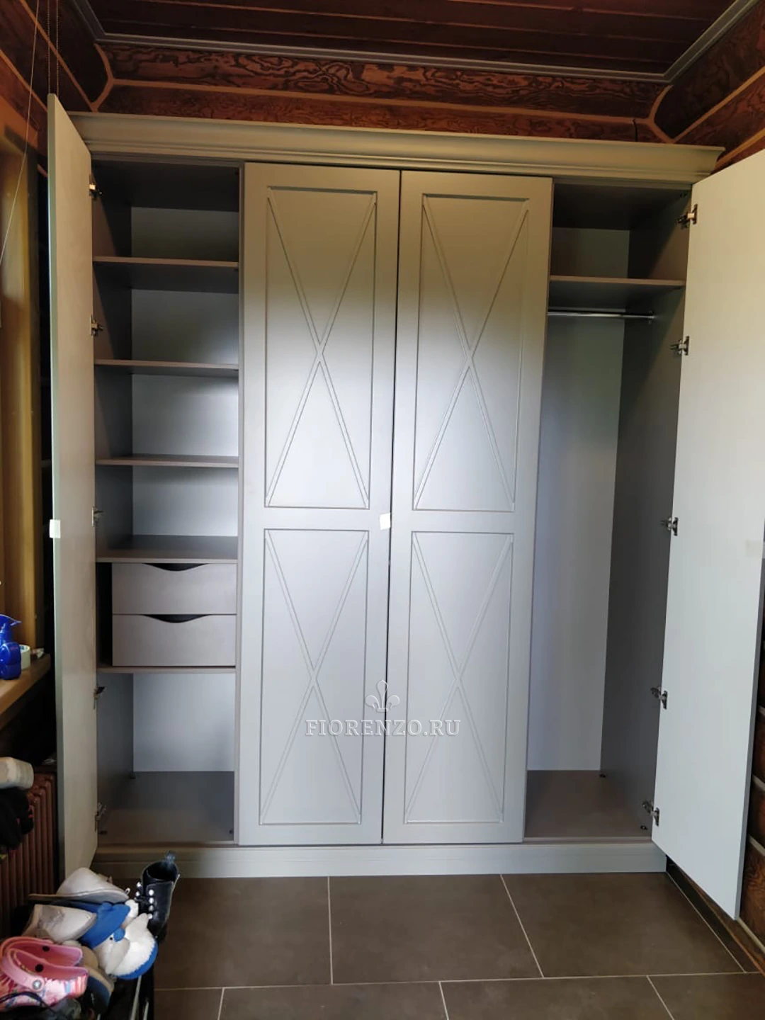 В каталоге FIORENZO вы найдете большой выбор уникальной мебели для современных интерьеров. Она качественная, красивая, имеет эксклюзивный дизайн. Индивидуальное проектирование позволяет получать решения, которые идеально удовлетворят запросы заказчика. Шкаф «Линьер» в стиле прованс для спальни подойдет для установки в нишу, просто у стены. Он высокий, вместительный, предполагает наличие функциональных антресолей.
