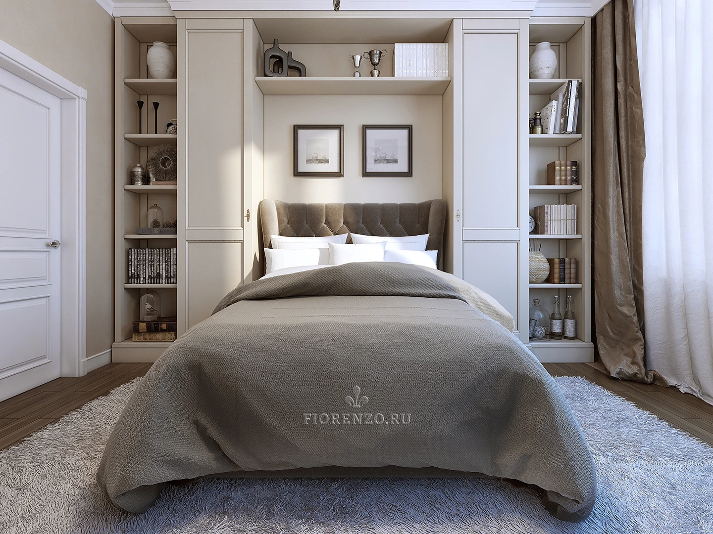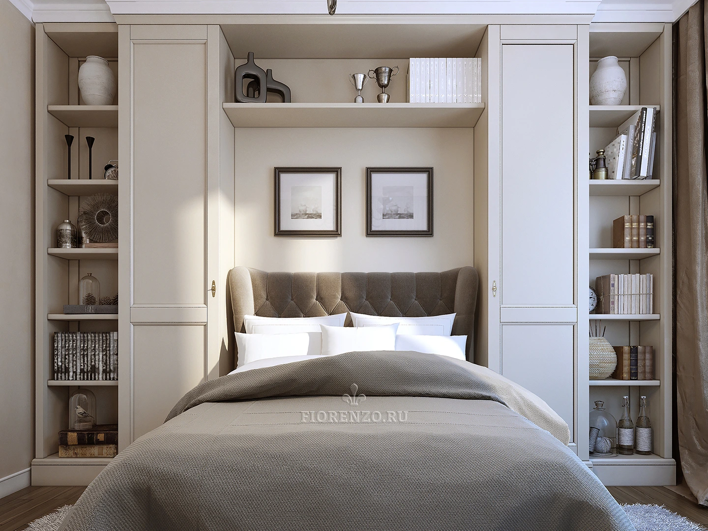 Шкафы удачно разместились у изголовья кровати, не загромождая пространство, оставили комнату светлой и просторной. При желании, можно подогнать размеры мебели под особенности вашего жилья, независимо от того, какая у него площадь и стилевое оформление.