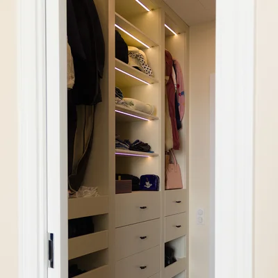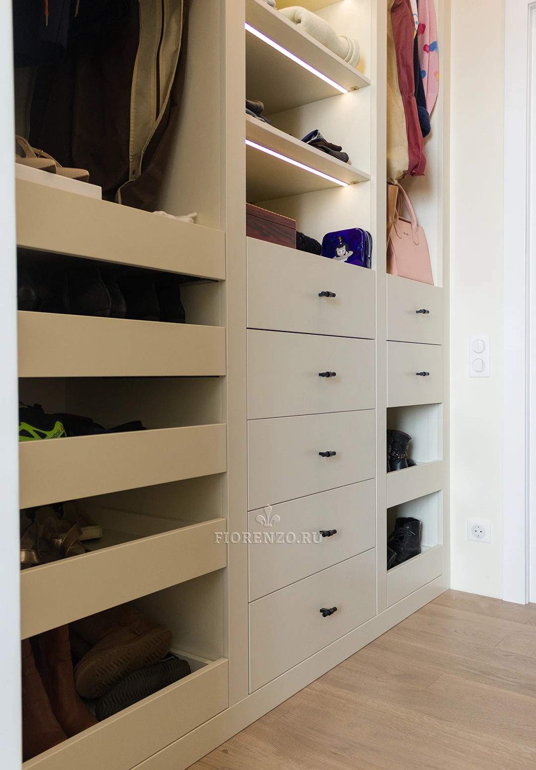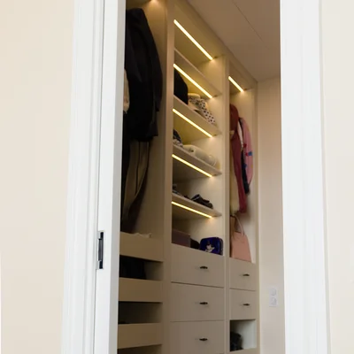 Заказала современную гардеробную, и это просто нечто! Сделали по моим размерам, и она идеально вписалась в пространство. Очень радуюсь качественным экологичным материалам, всё выглядит стильно и удобно. Мастера учли все мои пожелания, и результат превзошел ожидания!