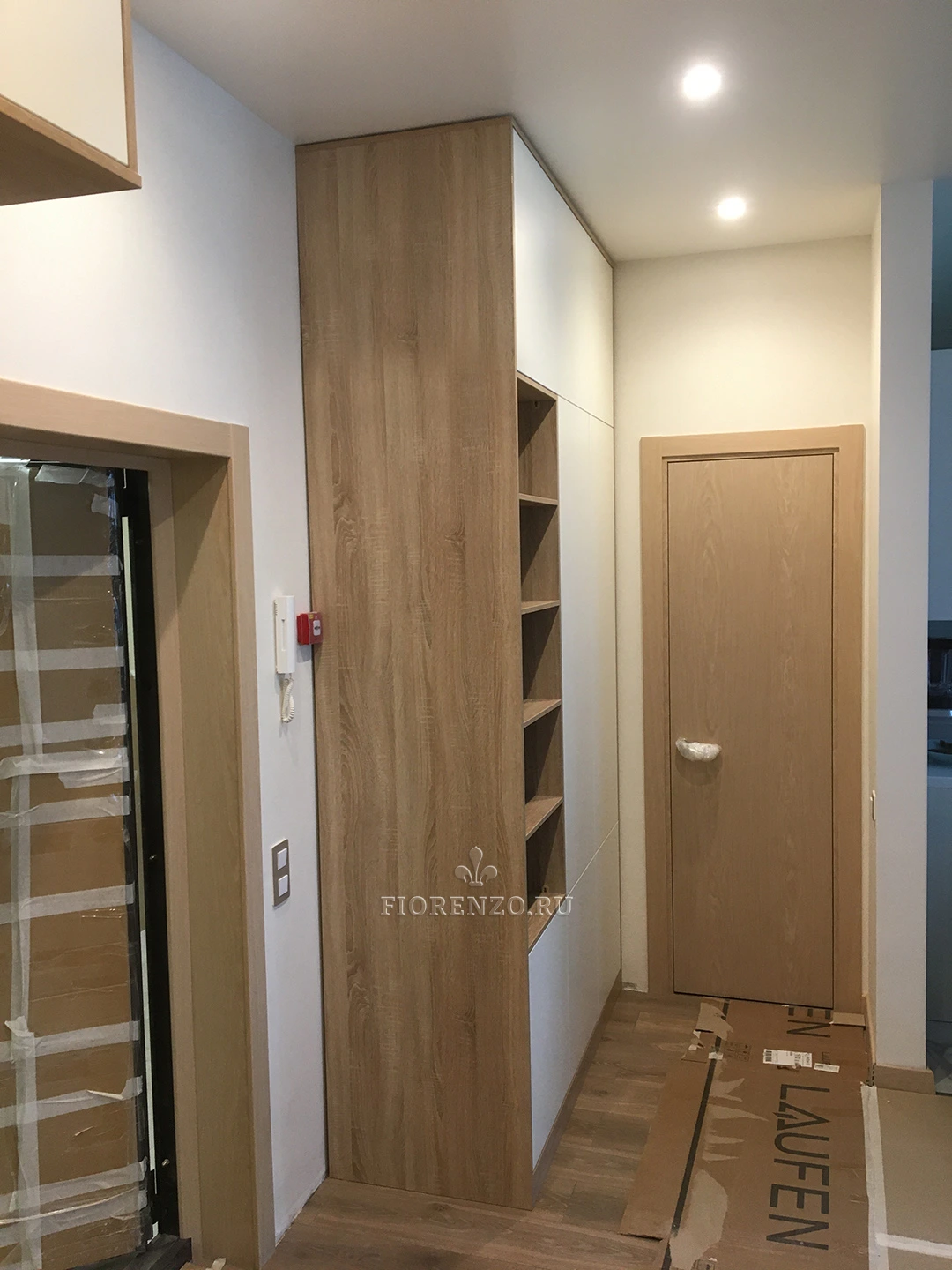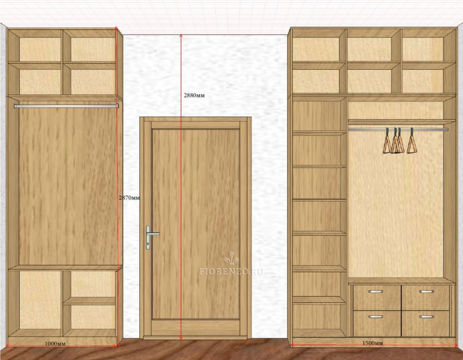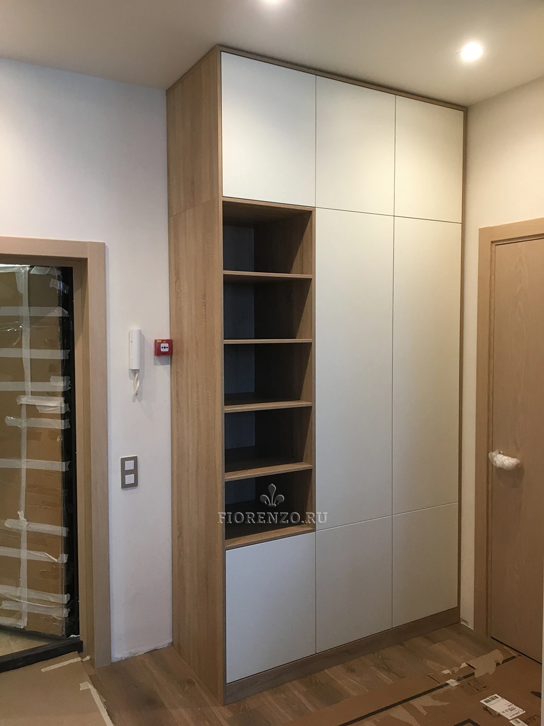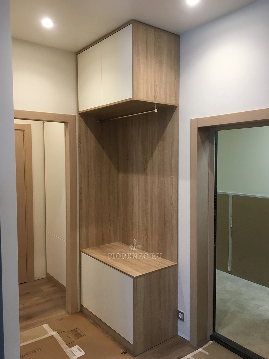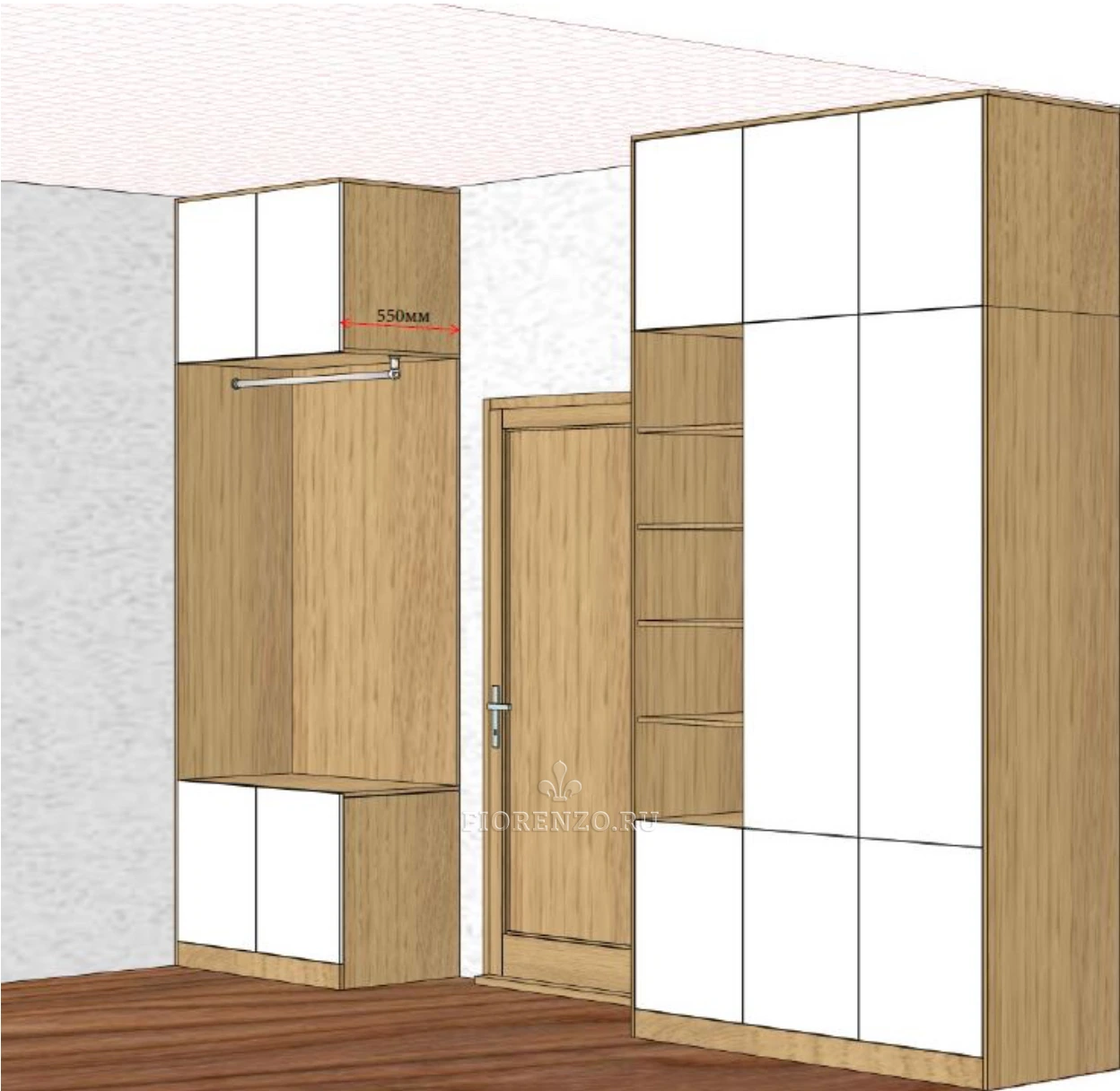 Мастерская «Фиорензо» проектирует оригинальную мебель для разных помещений. Прихожая «Дадри» – функциональный вместительный шкаф, который подойдет для просторного и маленького помещения. Он имеет высоту в потолок, приличную глубину (полки вместительные), занимает сравнительно немного места. Корпусная установка делает конструкцию мобильной.