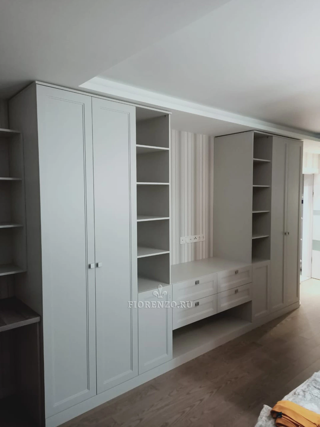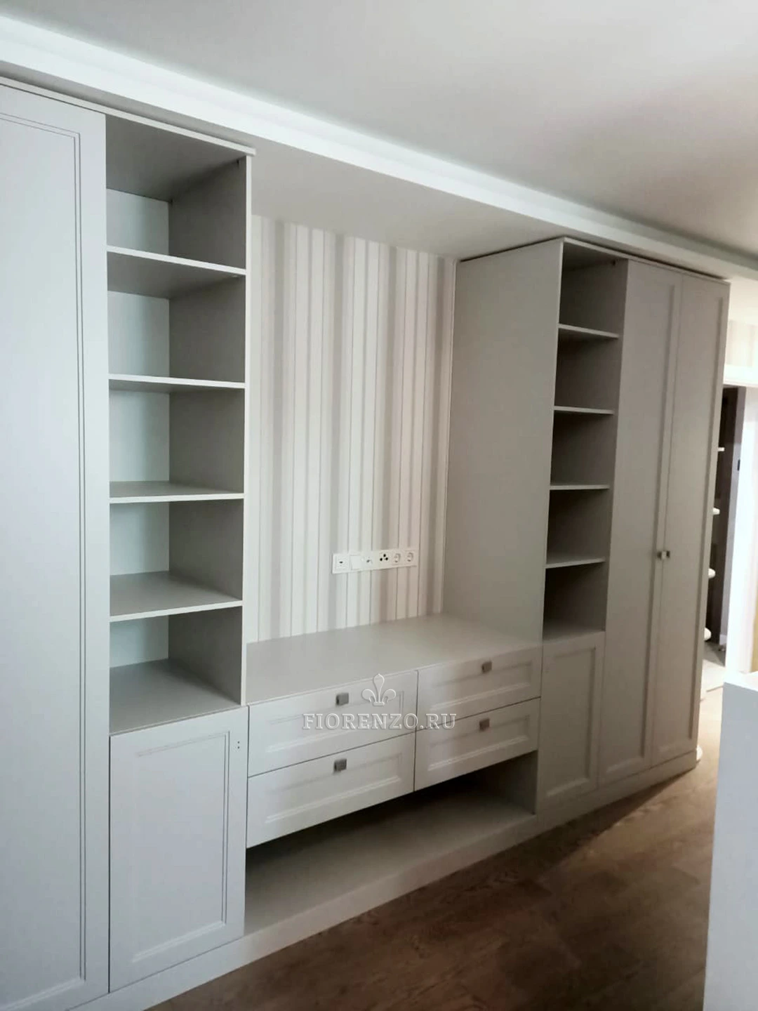 Готовый гарнитур для гостиной – это удобное и практичное решение. Вы заказываете стенку под телевизор, в которой уже есть все необходимое. Выглядит комплект монолитно, гармонично, вписывается в окружающее пространство. Стенки для гостиных подходят для любых помещений, ограничений в плане размеров, стилей оформления, форм нет. Мастерская «Фиорензо» изготавливает мебель по индивидуальным замерам – вы получите тот вариант, который будет соответствовать вашим запросам, не перегрузит помещение.