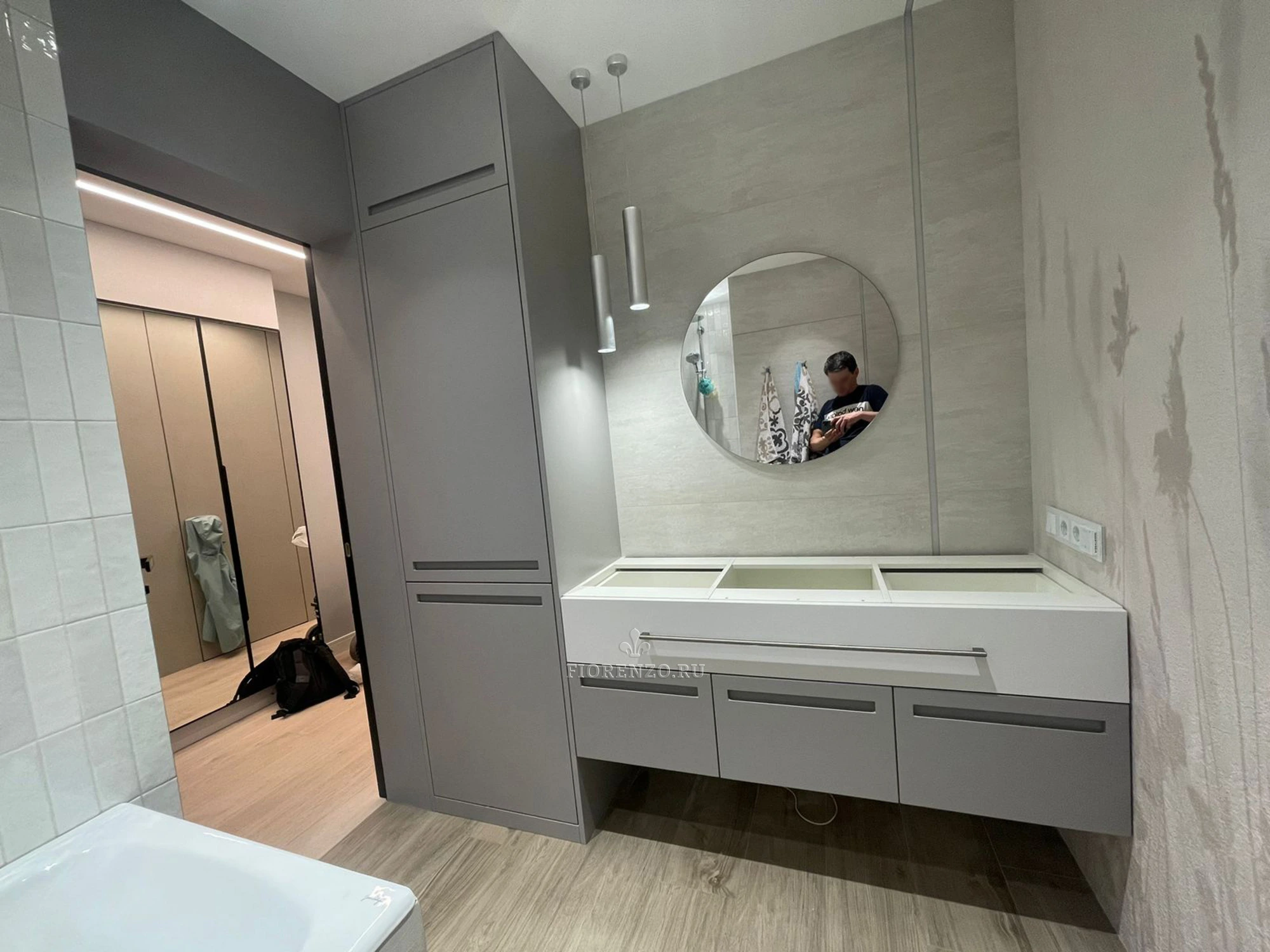Заказывали тумбу и высокий пенал — сделали под замер, качество фурнитуры и покраски на высоте. Быстрая доставка и аккуратная установка. Рекомендуем как премиальный вариант для ванной.