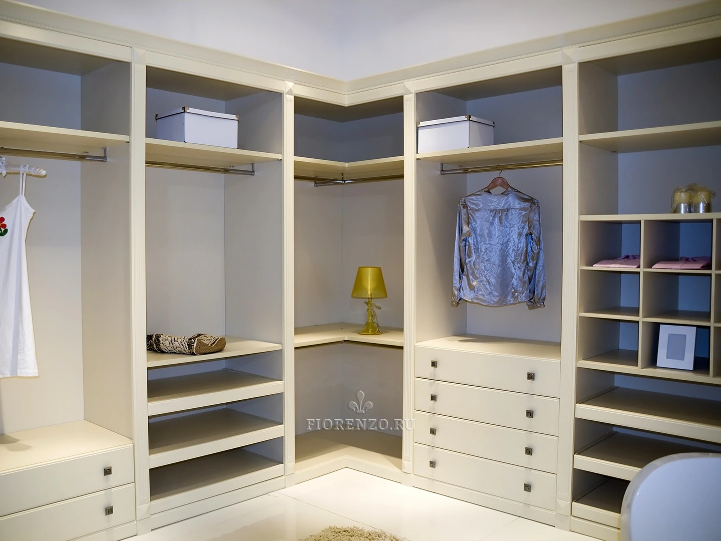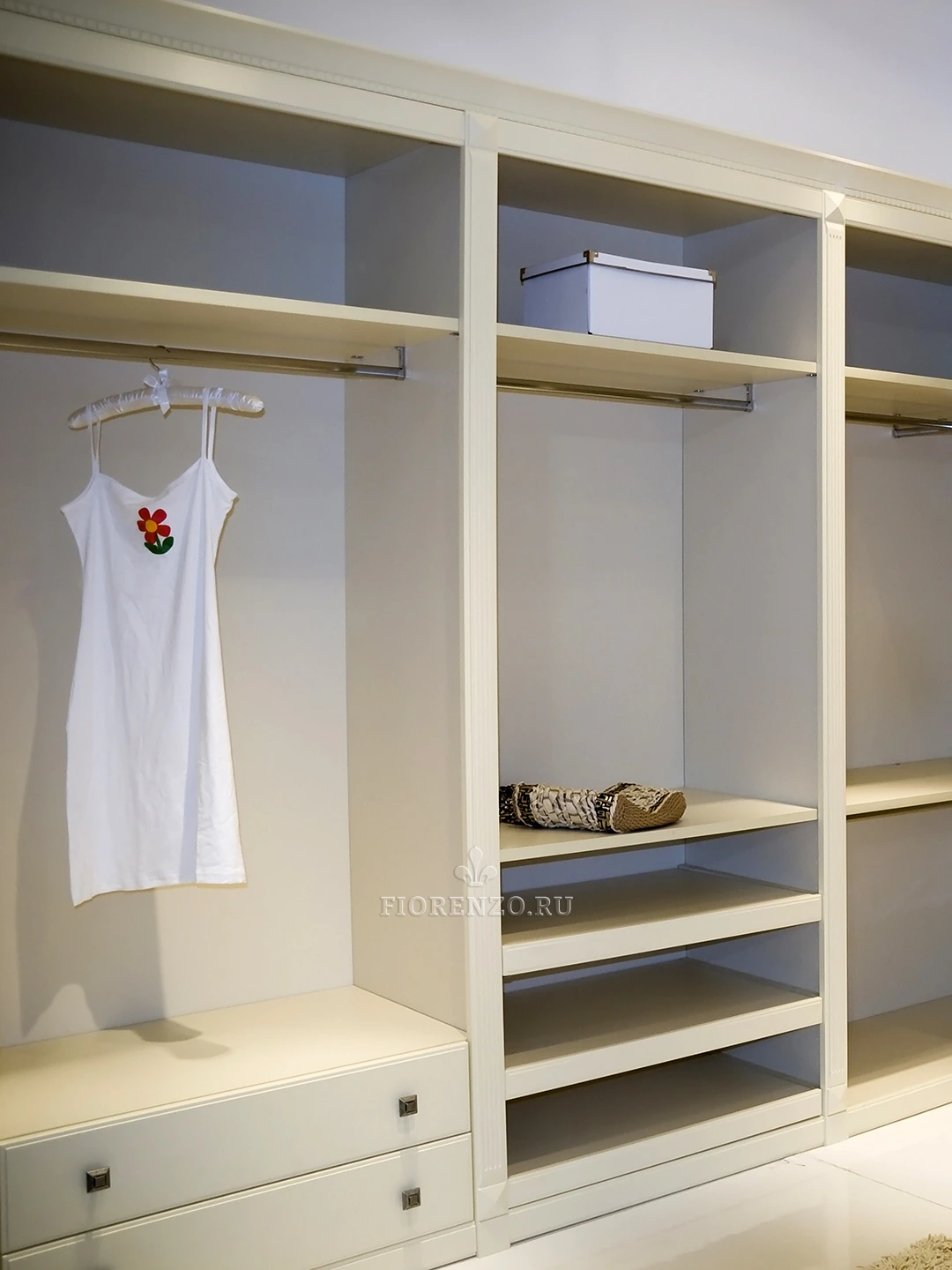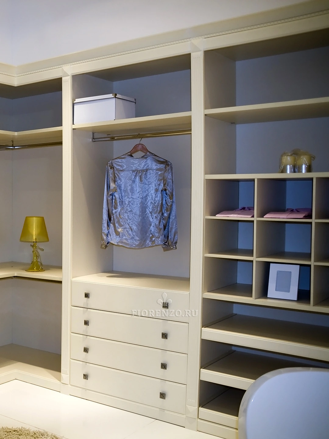 Угловая гардеробная «Джаора» в современном стиле с элементами «классики» является отличным выбором для небольшой отдельной комнаты, оборудованной для хранения одежды. Данная мебель позволяет без особых проблем поместить вещи семьи из трех-четырех человек, чтобы освободить пространство в других комнатах, избавив его от громоздких шкафов. Дизайнеры нашей компании разработали этот проект с учетом особенностей помещения, сделав гардеробную эргономичной и удобной в использовании. Она хорошо впишется как в интерьер городской квартиры, так и загородного дома или коттеджа.