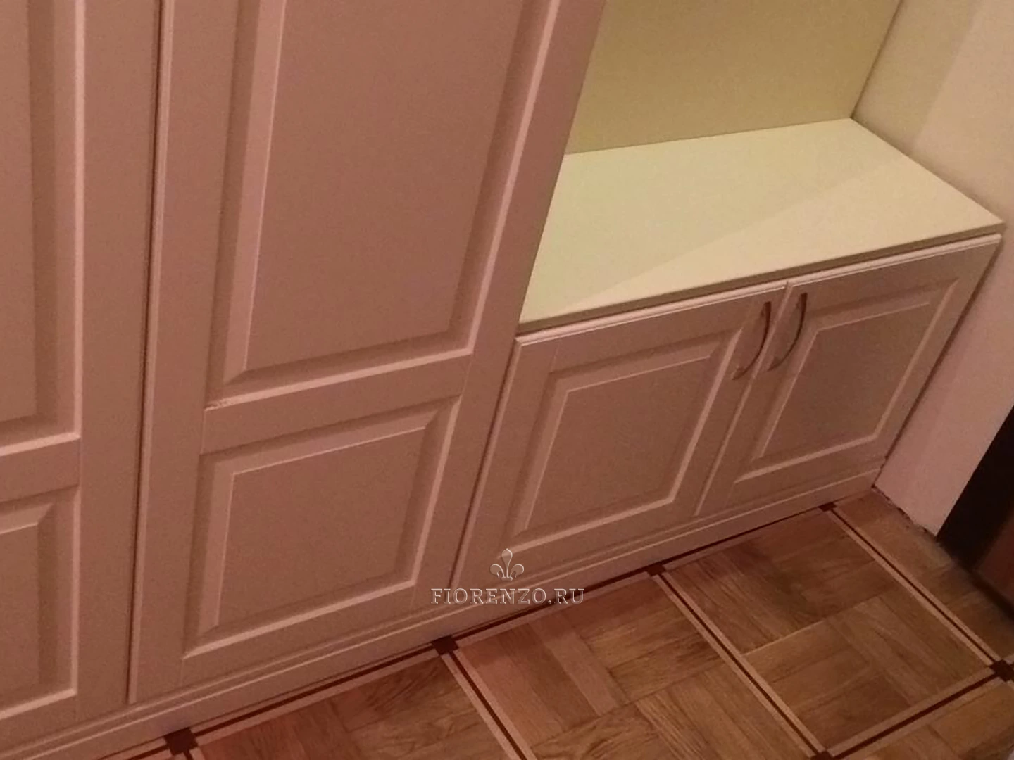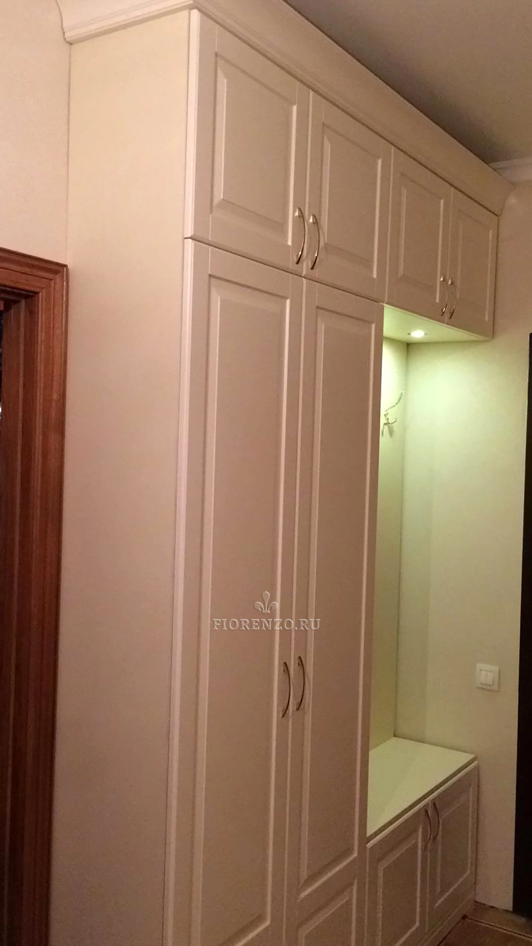 Специалисты компании Fiorenzo разработали проект узкого шкафа в прихожую «Пескара» с подсветкой на заказ. Для комнаты небольшой площади очень важно создать такую мебель, которая бы полностью вписывалась в интерьер, не загромождала пространство, была практичной и эргономичной. Мастерам нашей фабрики это удалось сполна – изделие идеально подходит для данной прихожей, создано с учетом ее площади и пожеланий клиента. Классический стиль выражается в наличии карниза, светлых оттенков, визуально расширяющих пространство, филенчатых фасадов с металлическими ручками. Есть возможность создания подобного проекта по вашим размерам и эскизам, пожеланиям всех членов семьи. Для отображения будущей мебели с разных ракурсов создается компьютерный трехмерный чертеж. При изготовлении используются прочные экологичные материалы и европейская фурнитура.