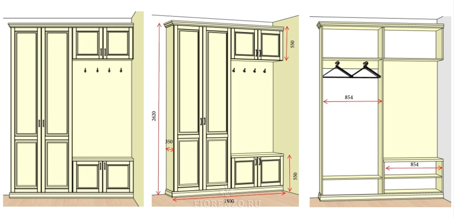 Другие варианты узких шкафов в прихожую можно посмотреть в нашем каталоге. Доставка, сборка и установка выполнены мастерами компании «Fiorenzo Мебель». Распространяется гарантия на 24 месяца.