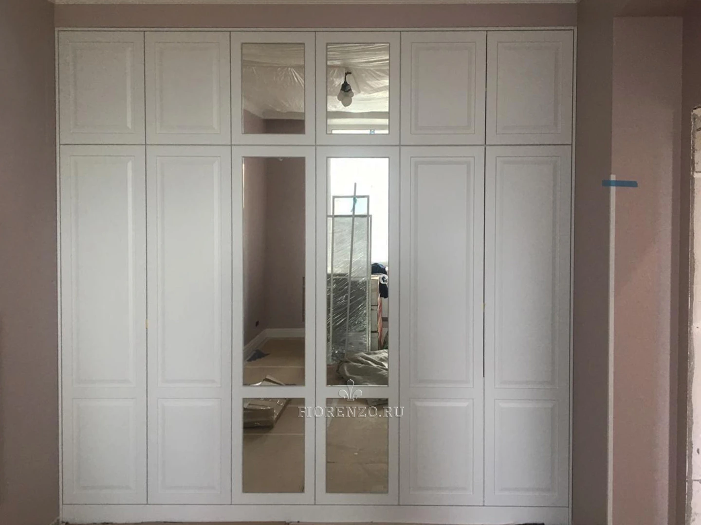 Мастерская «Фиорензо» изготавливает мебель премиум-уровня, проекты – типовые, нестандартные. Заказывайте изготовление решение любой сложности и получайте идеальный результат. Встроенный распашной шкаф для спальни «Ронда» – универсальный, практичный, комфортный выбор. Он устанавливается во всю стену, имеет высоту в потолок. Вместительное внутреннее пространство создаст удобные условия для хранения нужного количества вещей.