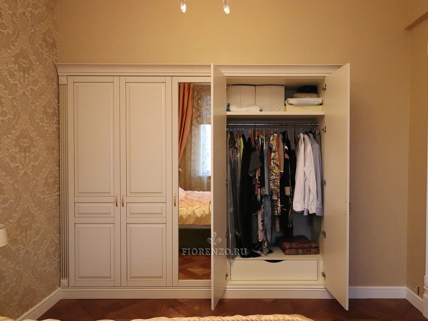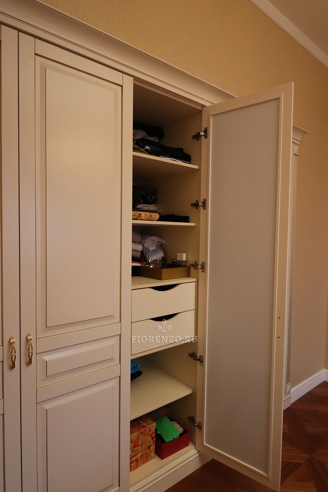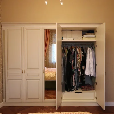 Изделие встроено в специально подготовленную для него нишу, поэтому смотрится компактно, обладает высокой эргономикой и практичностью. Распашной шкаф подобного плана можно изготовить по индивидуальным размерам. Дизайнеры нашей компании разработают внутреннюю начинку в соответствии с вашими требованиями и задачами, а установщики выполнят профессиональный монтаж с гарантией.
