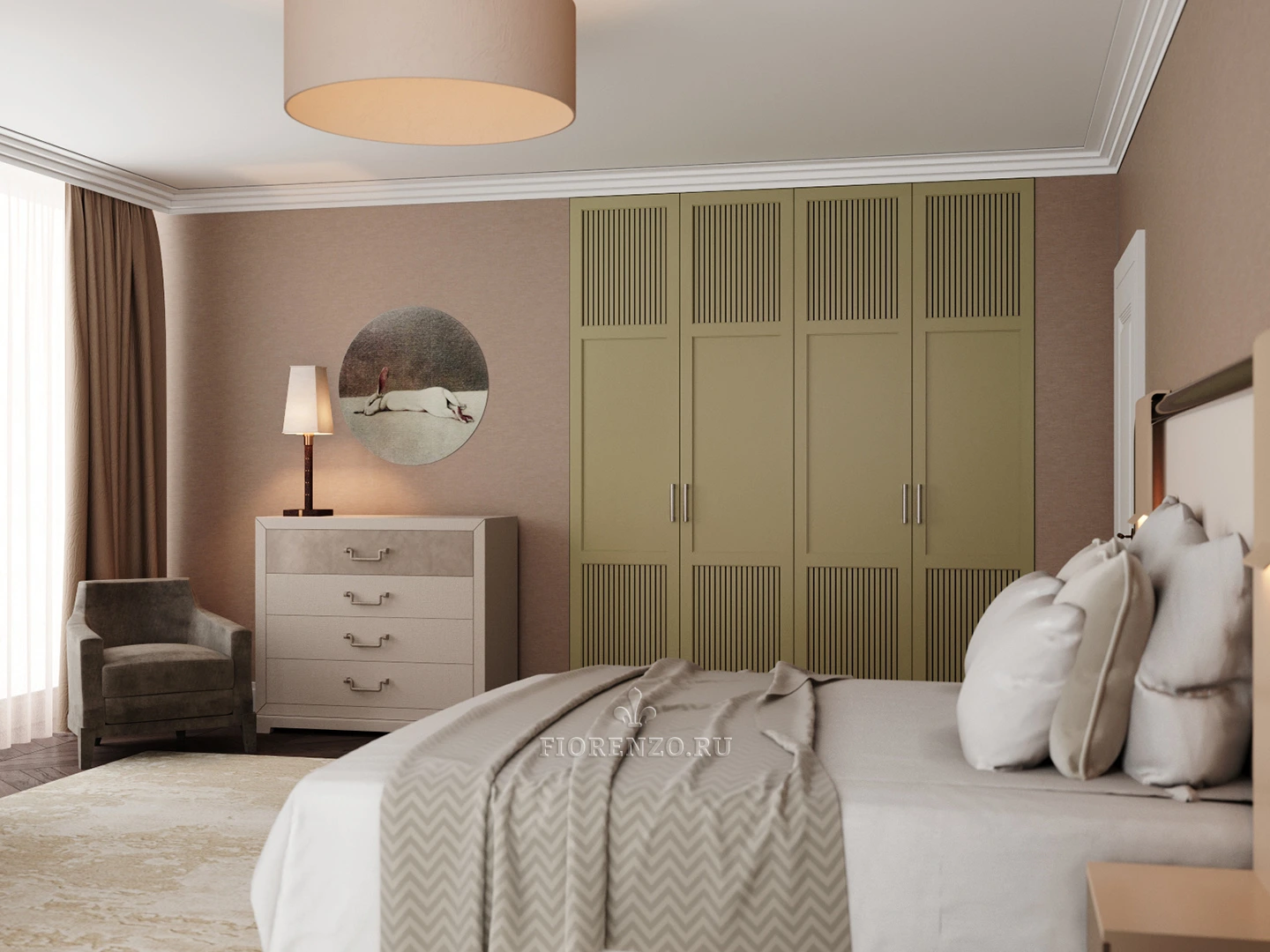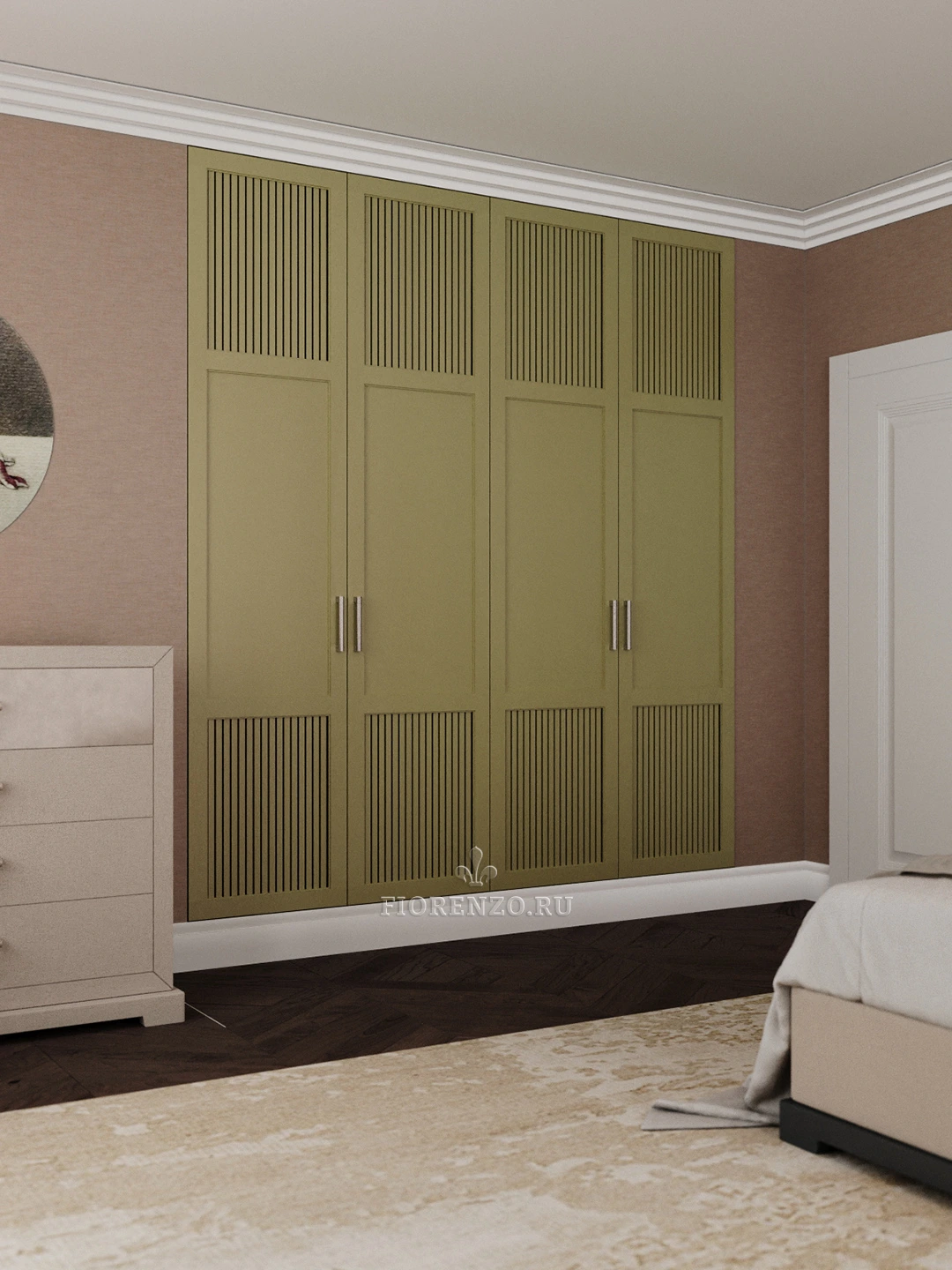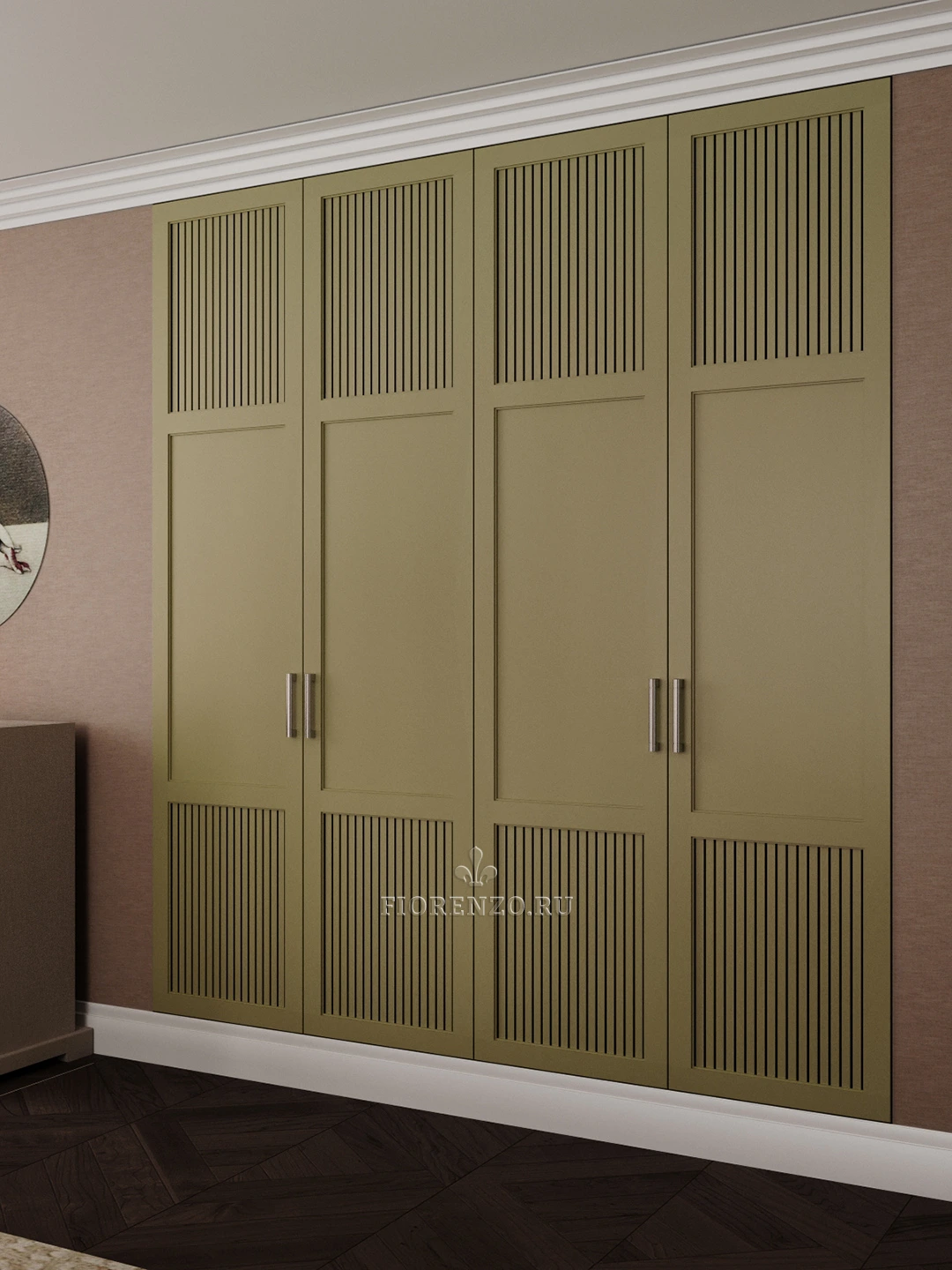 FIORENZO – мастерская уникальных решений и производитель мебели высокого качества. Тут вы можете заказать индивидуальный проект любой сложности и получить роскошный результат. Цвета, стили, размеры мебели выбирайте. Встроенный шкаф «Альби» с вентилируемыми фасадами подойдет для спальни, его характерной особенностью будет наличие вставок по типу жалюзи в дверках.