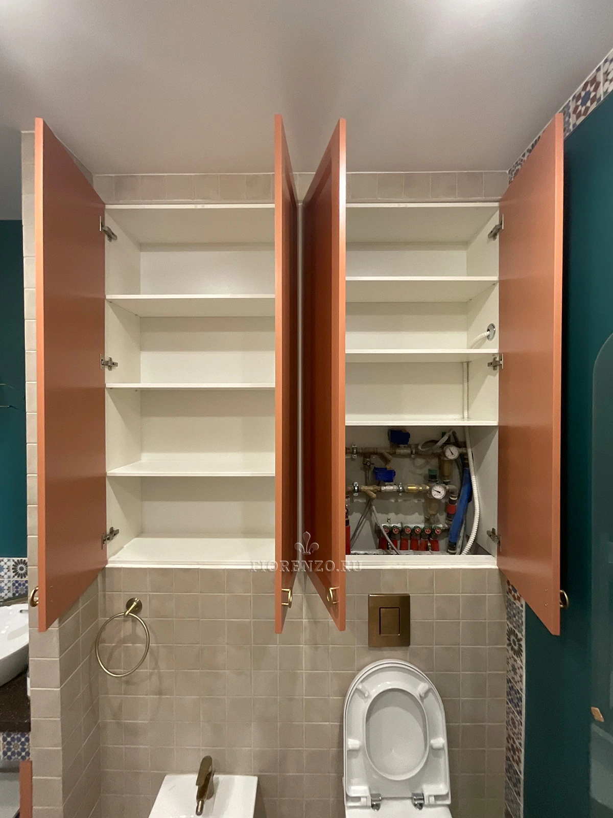 Уют и практичность санузла зависят от правильности организации пространства. Хорошим подспорьем станет специальная мебель. Встроенный шкаф в санузле над инсталляцией «Брюз» от компании «Фиорензо» изготавливается по размерам, гармонично вписывается в интерьер, расставляет акценты, создает практичную систему хранения.