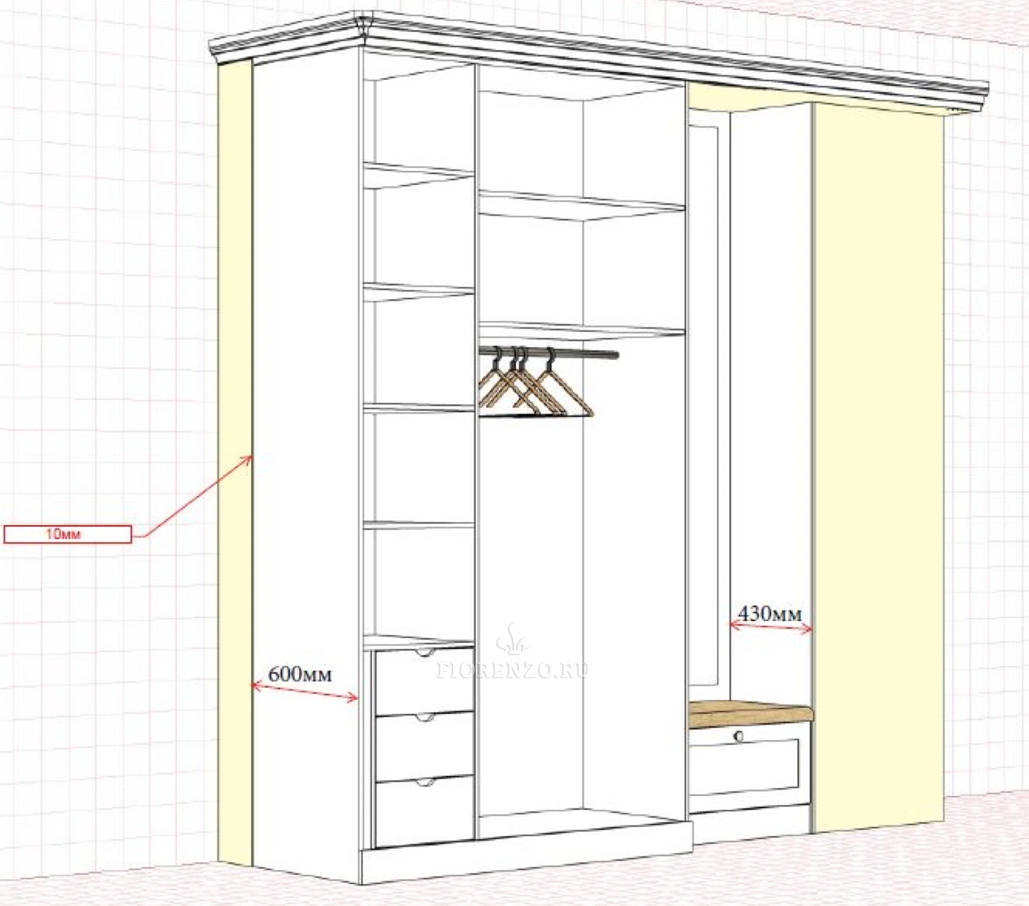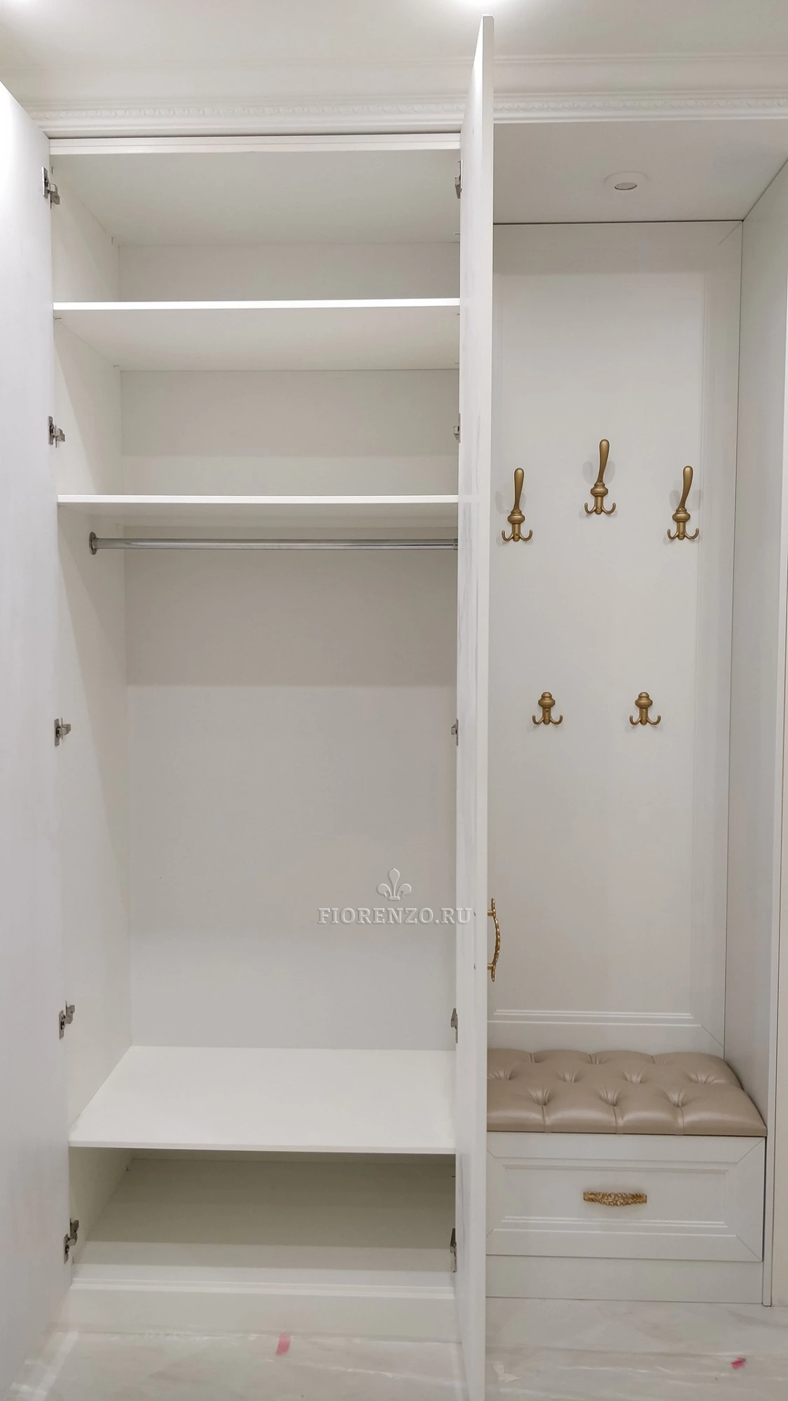 Мастерская «Фиорензо» предлагает проекты для прихожих всех стилей, размеров. В последние годы спросом пользуется мебель в неоклассическом ключе. Она вместительная и легкая, эргономичная и не перегружает пространство.