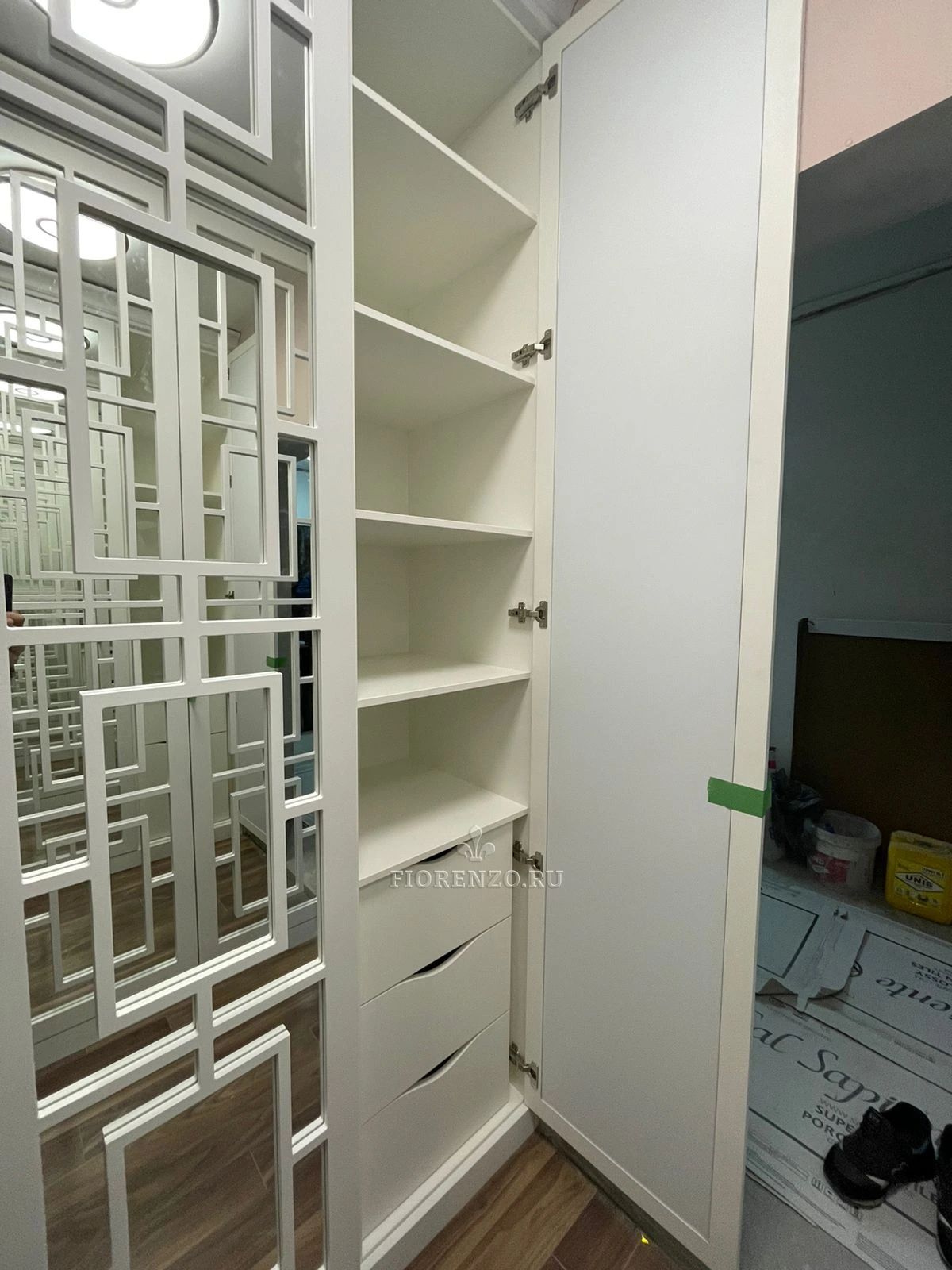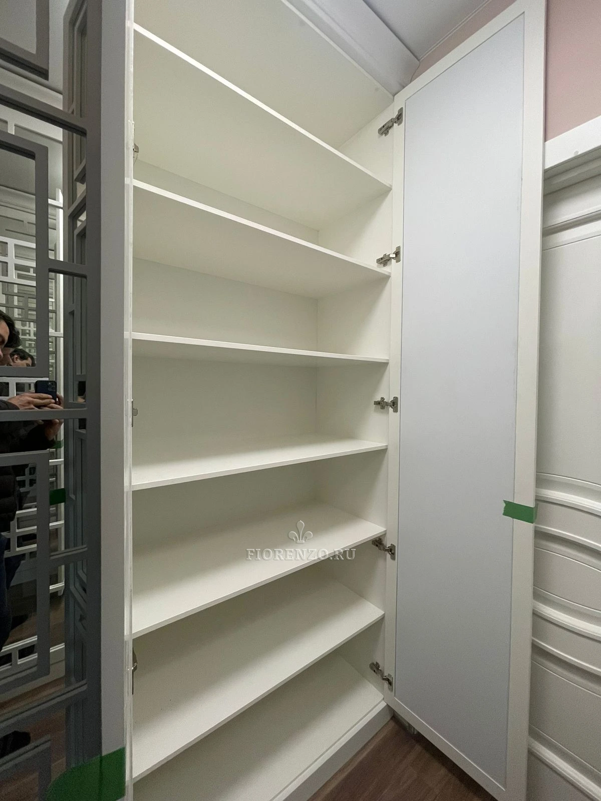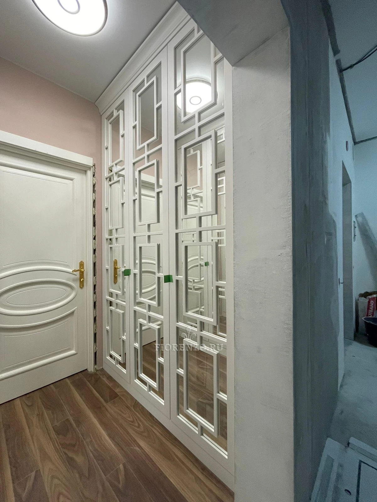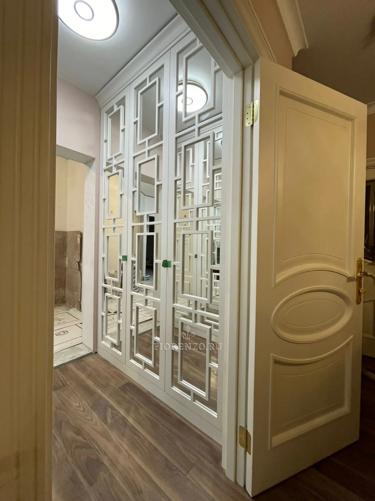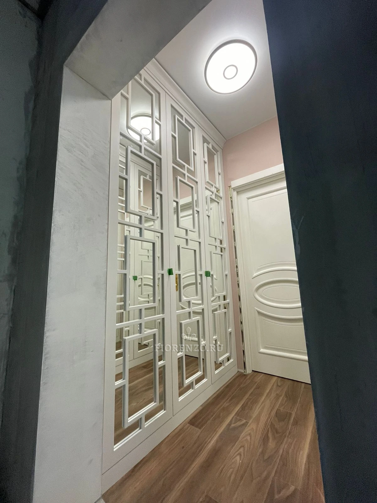 Компания «Фиорензо» производит мебель в разных стилях. Высоким спросом пользуются гарнитуры и отдельные предметы в стиле неоклассика. Зеркальные створки с раскладкой визуально расширяют пространство, придают помещению нарядность, но не перетягивают внимание на себя.