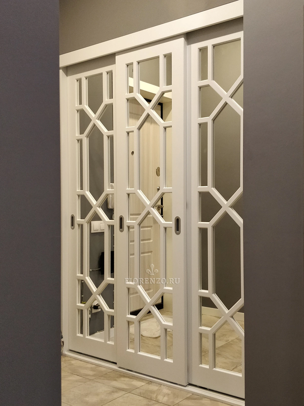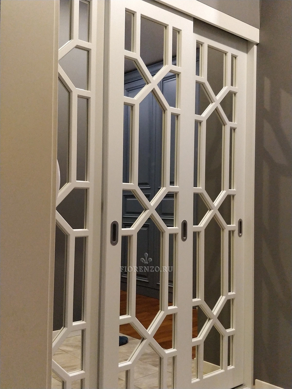 Мастерская «Фиорензо» реализует качественную, эксклюзивную дизайнерскую мебель. Зеркальный шкаф-купе Leffe изготавливается по замерам помещения, встраивается в свободную нишу. За счет отсутствия задних стенок и боковин появляется возможность для экономии на изготовлении мебели.