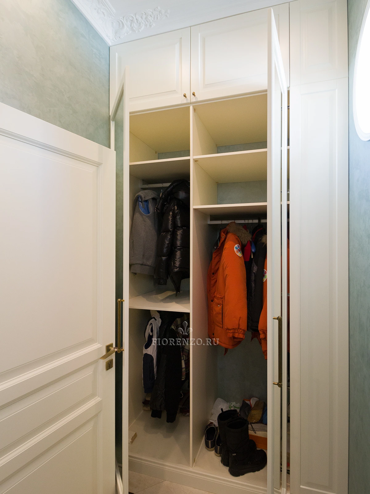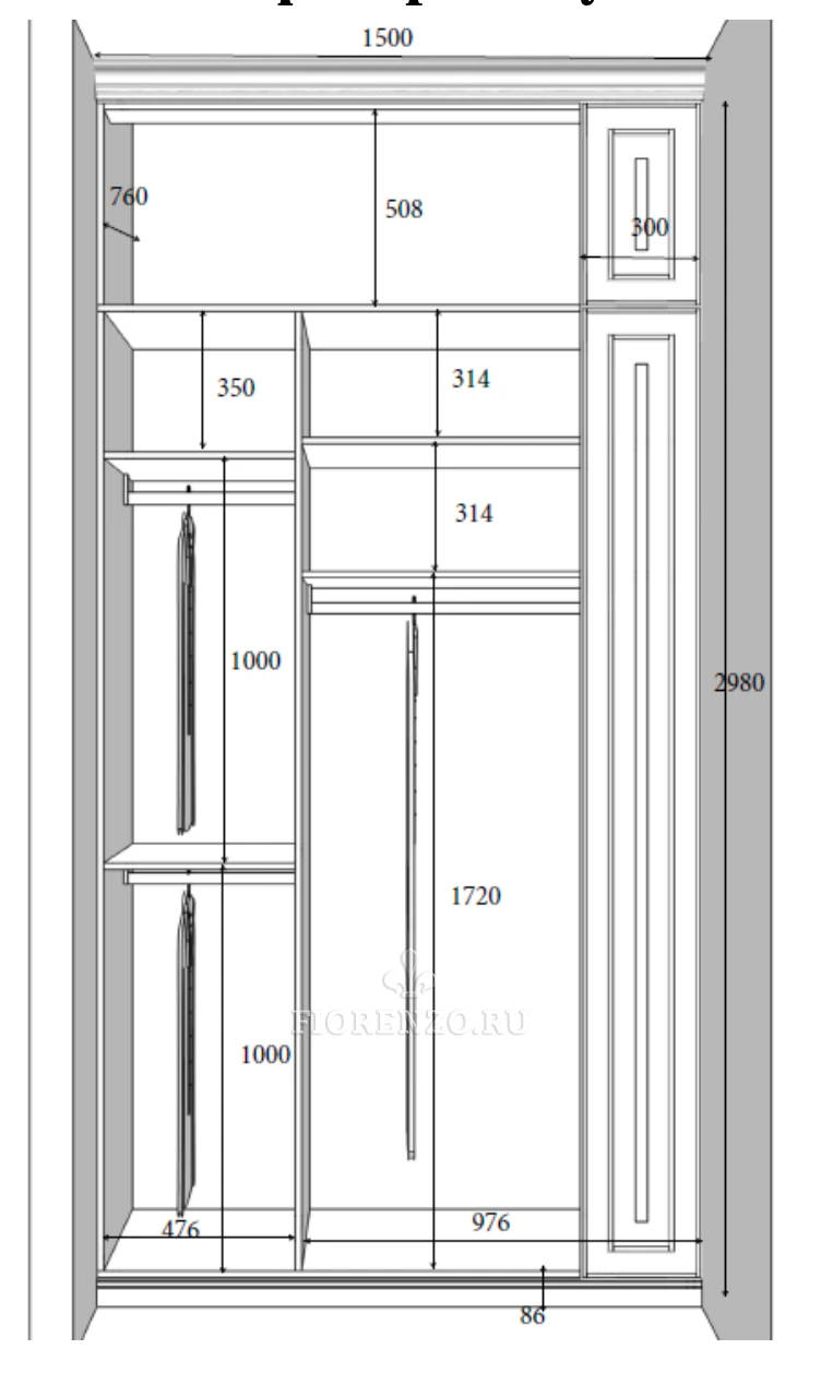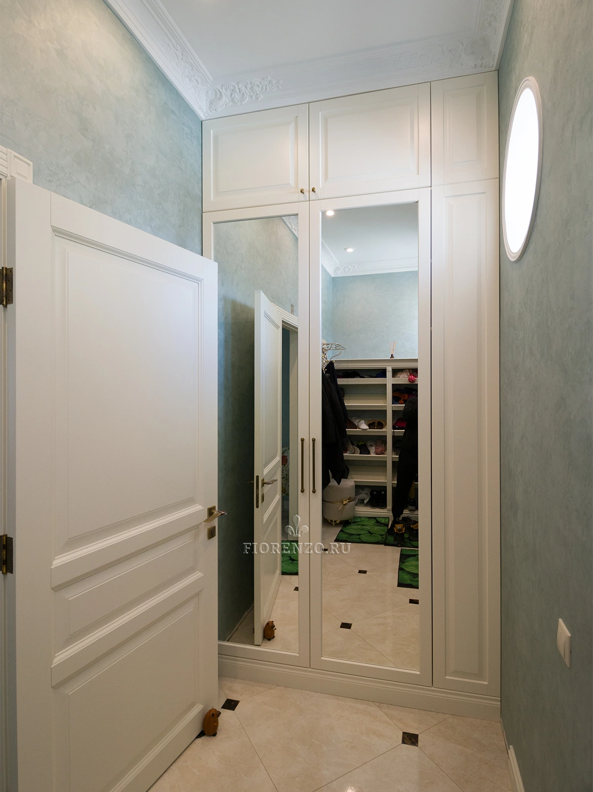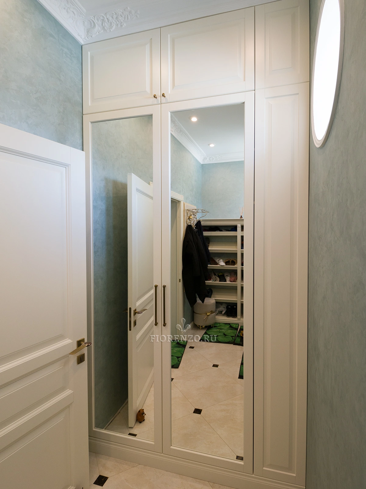 Компания «Фиорензо» предлагает покупателям широкий выбор проектов в классическом стиле. Зеркальный шкаф для прихожей «Лере» подойдет для помещений разной площади. Он встраивается в свободную нишу, изготовление идет по размерам.