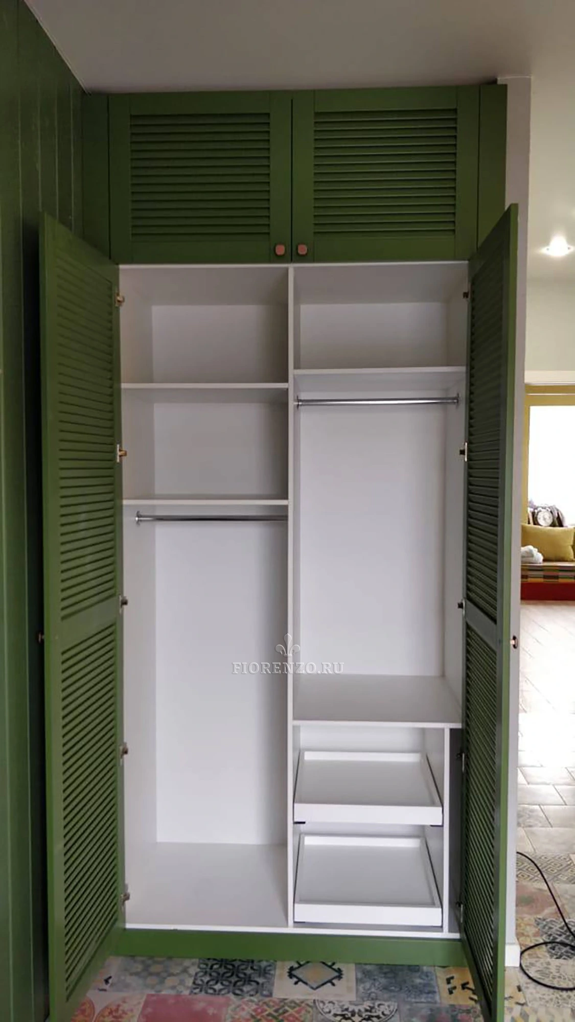 Мастерская «Фиорензо» учитывает в работе интерьерные тренды. Актуальны сейчас шкафы с жалюзийными створками. Они функциональные, красивые, не перегружают пространство, создают условия для вентиляции внутреннего пространства.